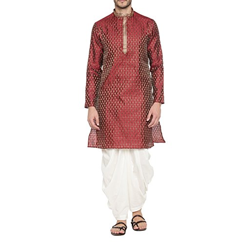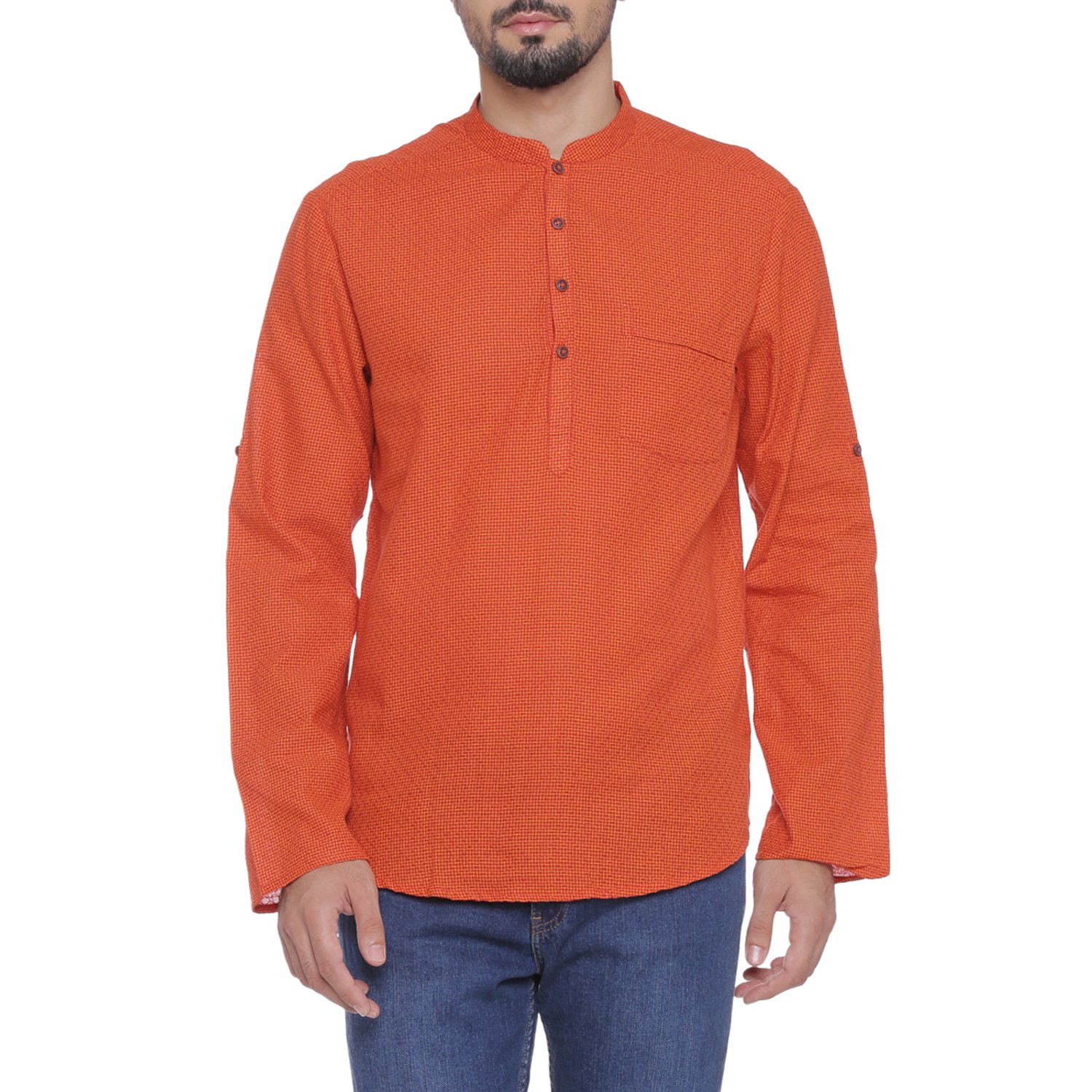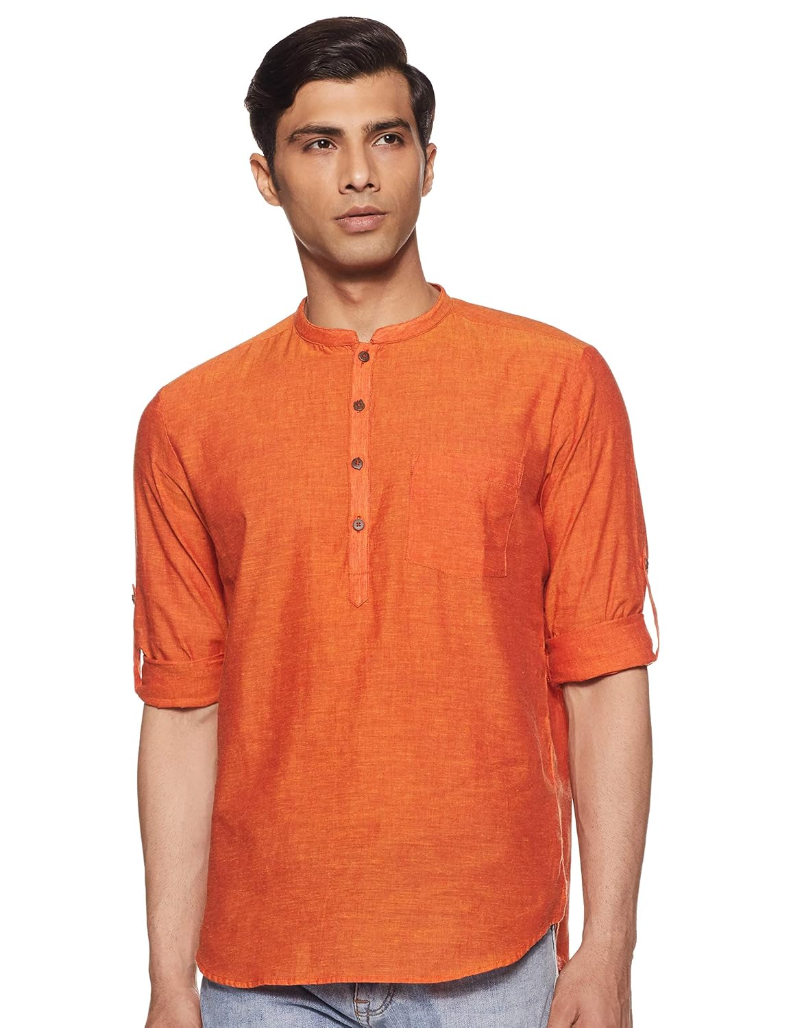 Indus Route by Pantaloons Men's Cotton Kurta (110049618_Rust_Medium)