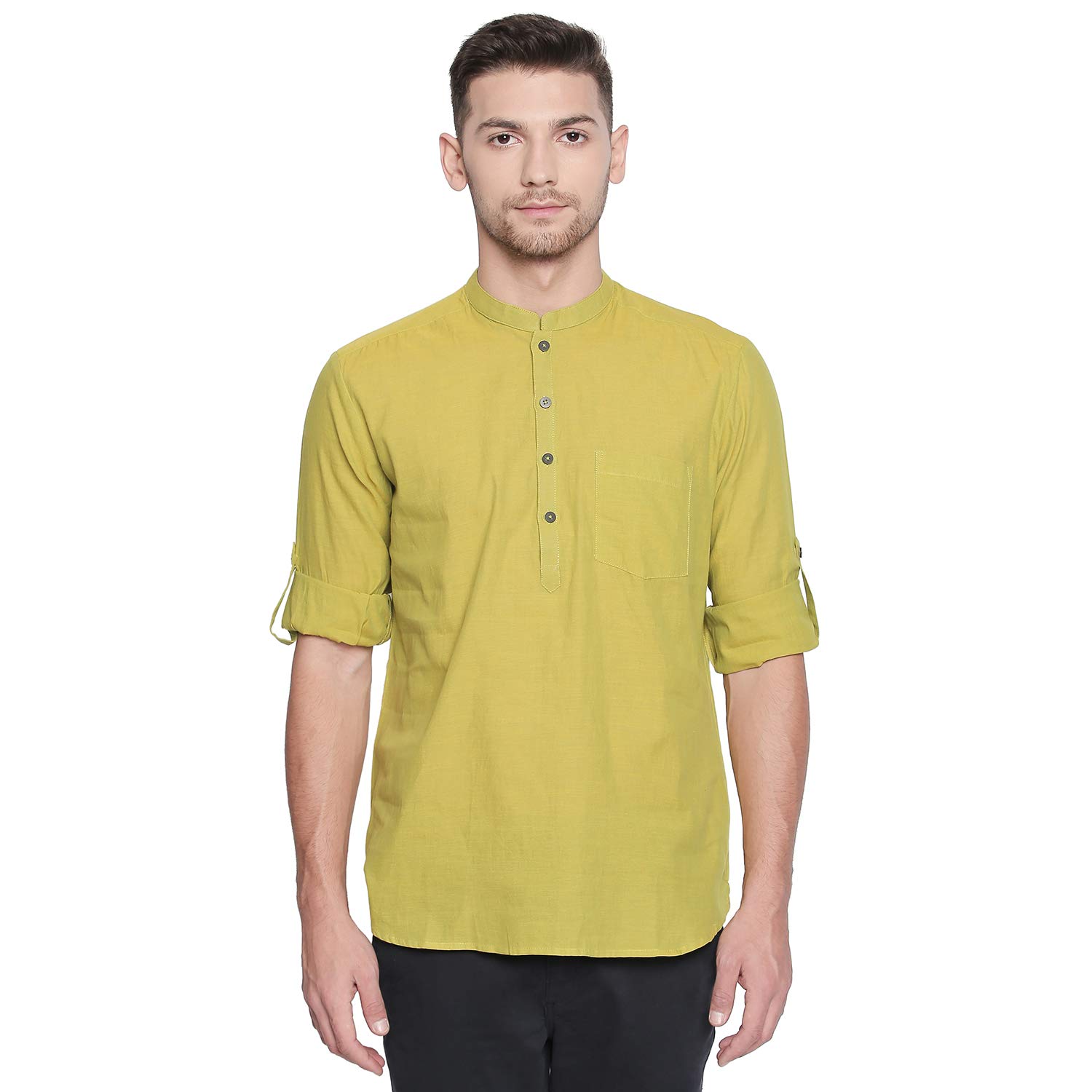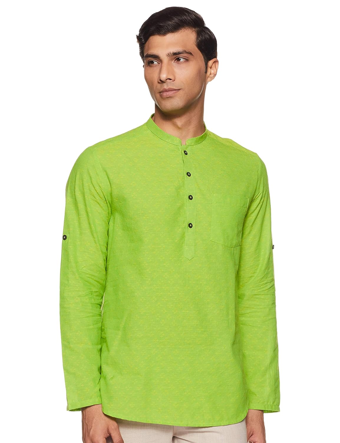 Indus Route by Pantaloons Men's Cotton Kurta (110049623_Lime Green_Medium)