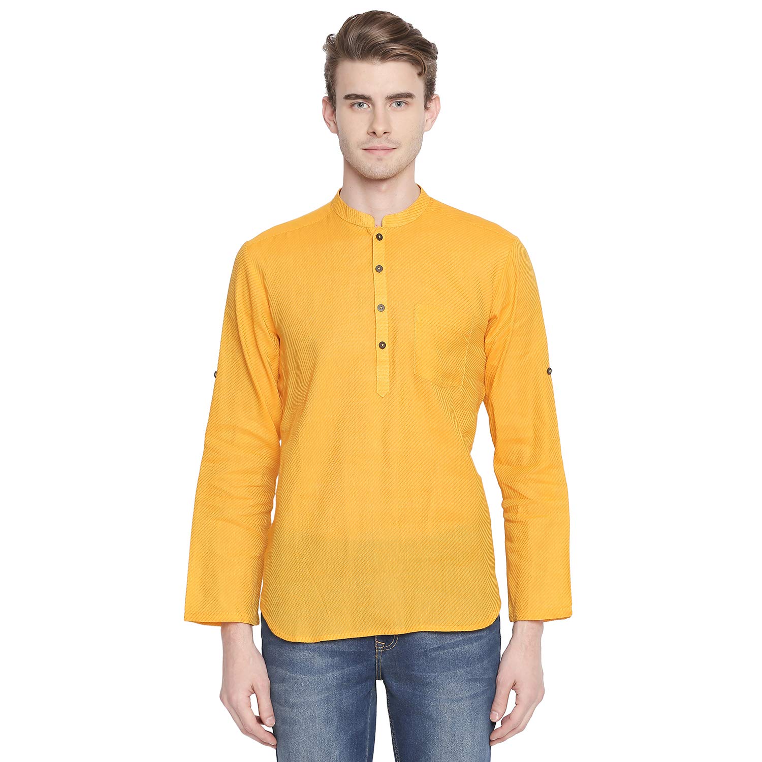 Indus Route by Pantaloons Men's Cotton Kurta (110049628_Mustard_Small)