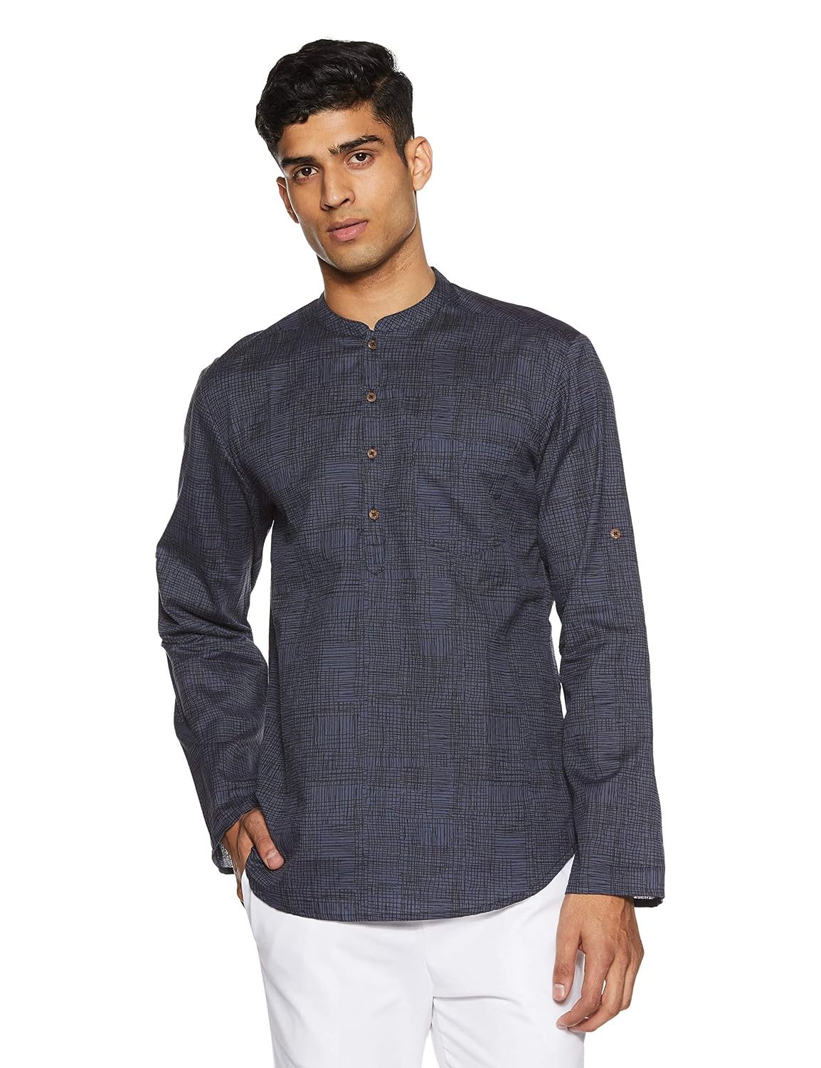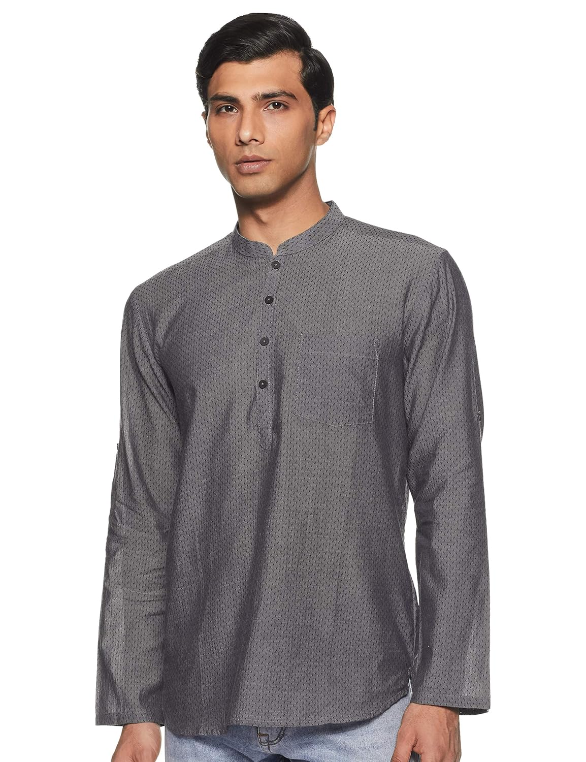 Indus Route by Pantaloons Men's Cotton Kurta (110049636_Charcoal_Medium)