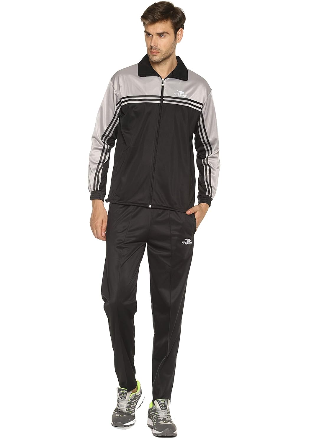 HPS Sports Men's Polyester Fabric Grey Black Tracksuit