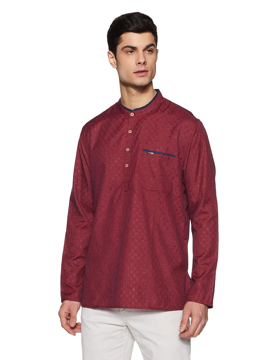 Peter England Men's Cotton Kurta (POKUOHSF066478_Brown_92)