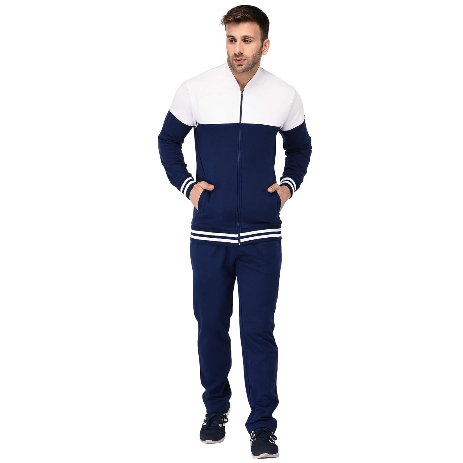 Vivid Bharti Blue & White Fleece Zipper Men's Tracksuit
