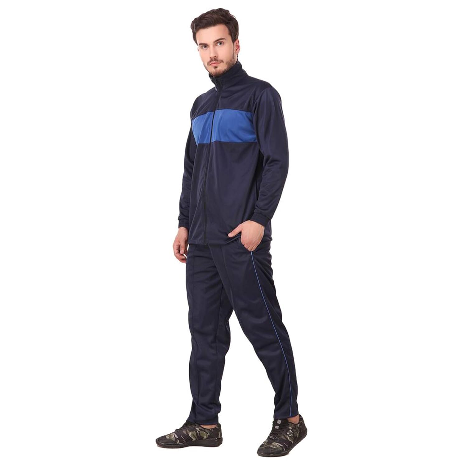 BEST DEAL Vdg Men's Tracksuit (Navy Blue and White, 38)