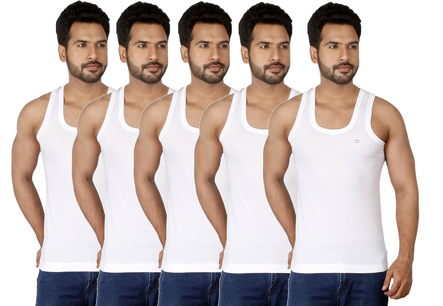 Rupa Men's Sleeveless Cotton White Vest Pack of 5