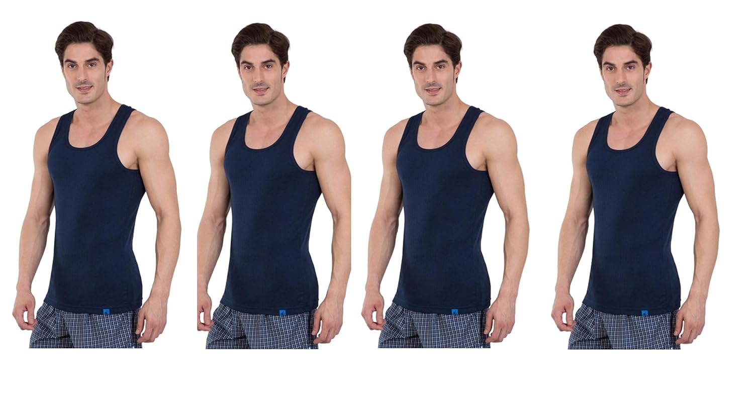 Anshu Retails Jockey Men's Cotton Ribbed Vest (Pack of 6) 8823 2 handker Ch...