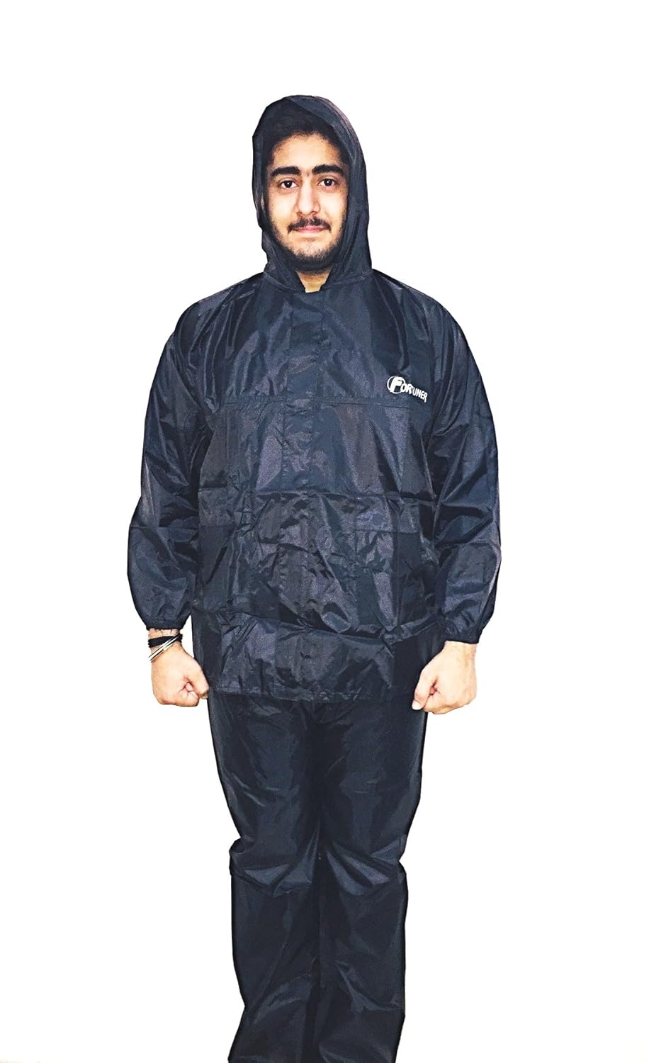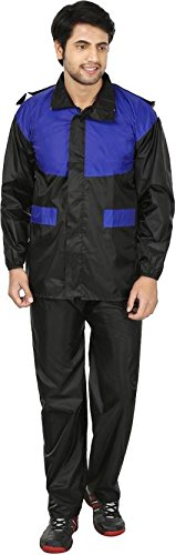 REXBURG Stylish Dual Tone Monsoon Perfect Men's Rain Coat (Black & Royal Bl...