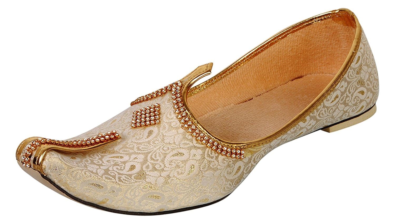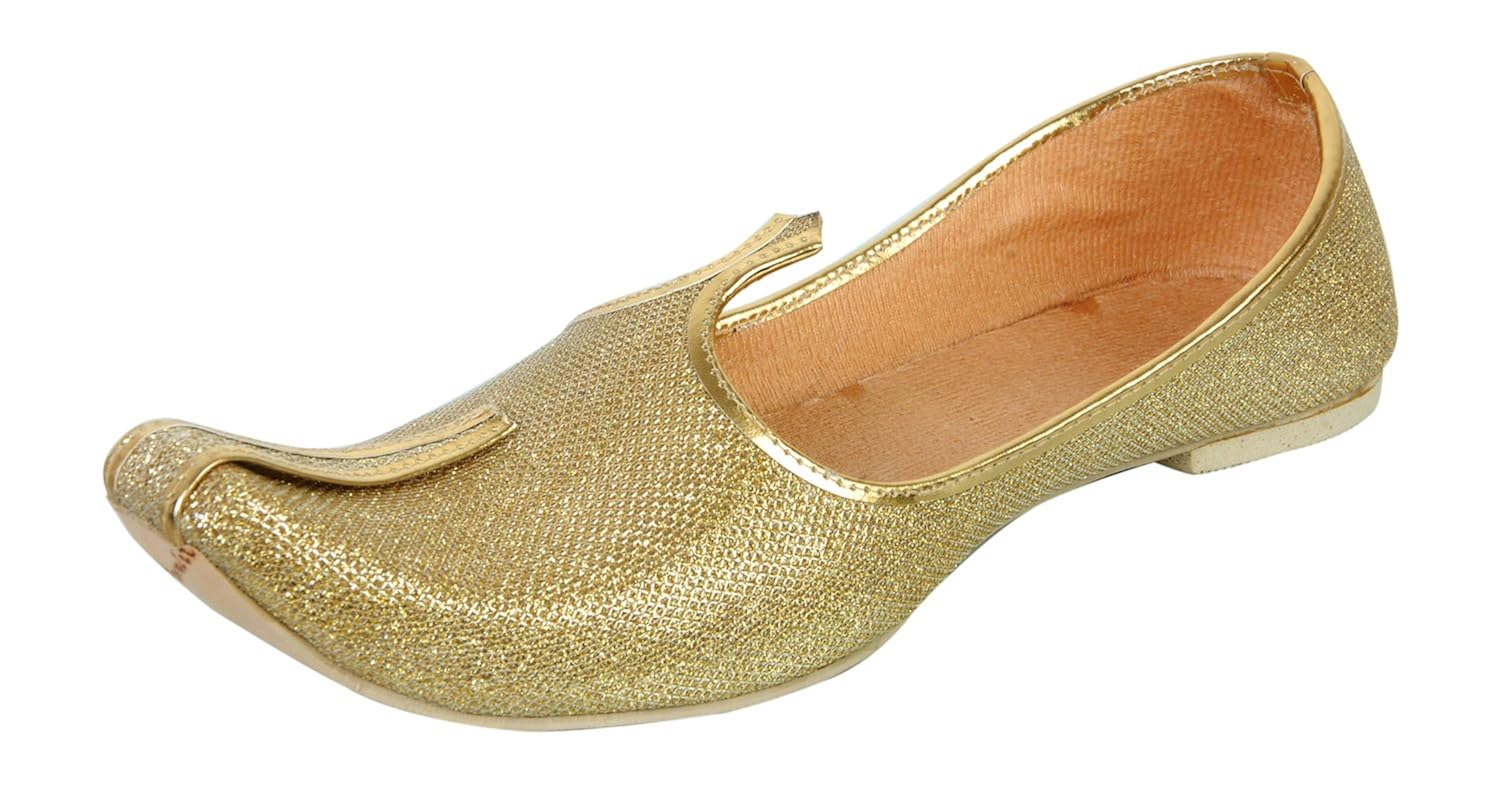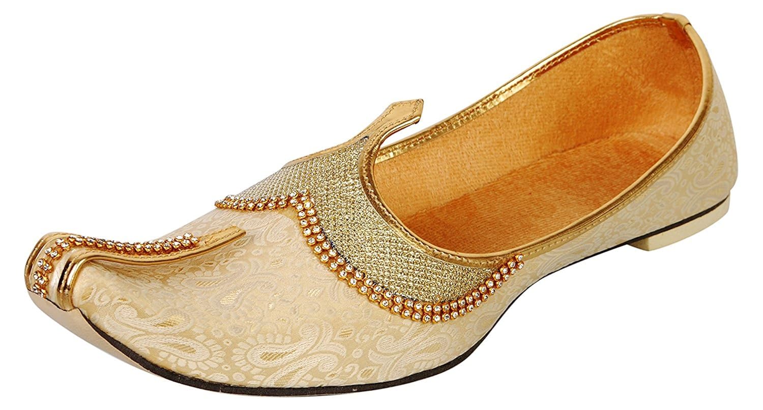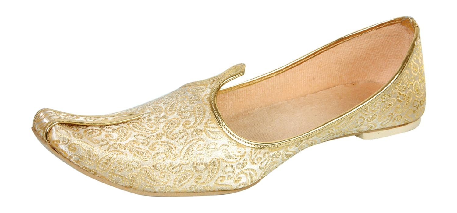 vision art JOPELLE Men's Golden Silk Sherwani Mojaris (Jutti)