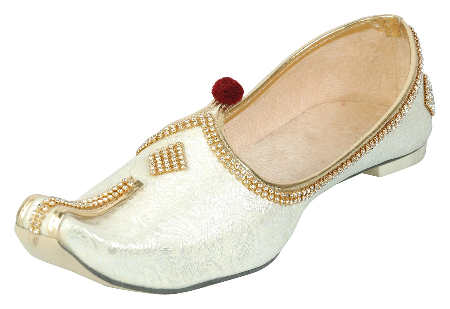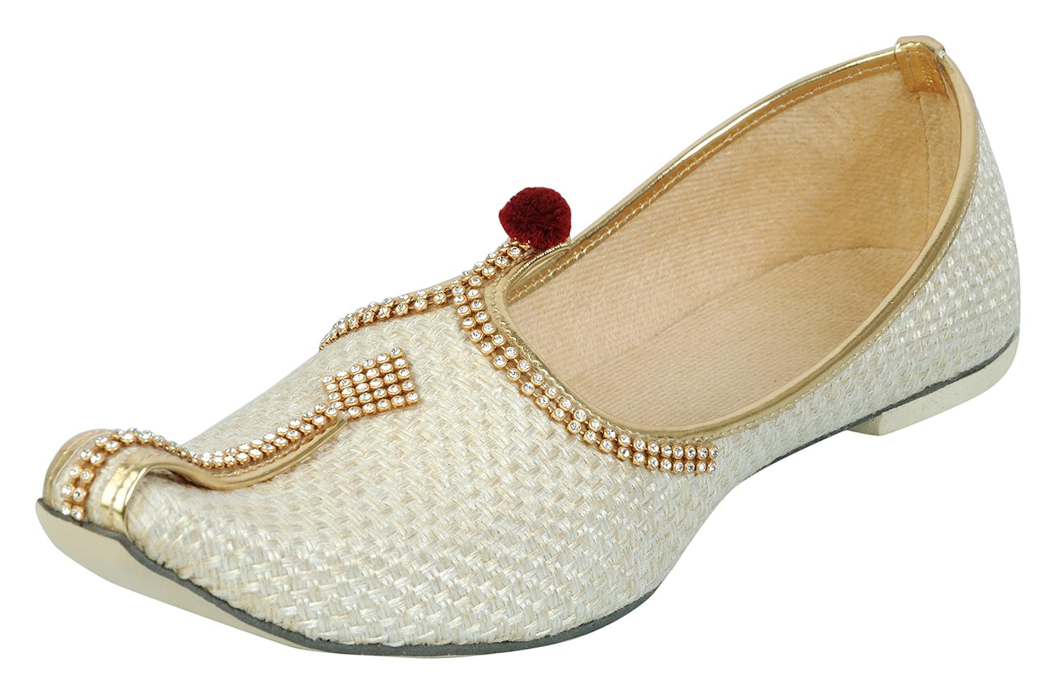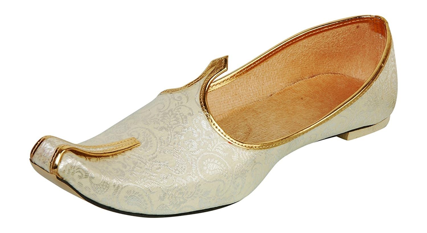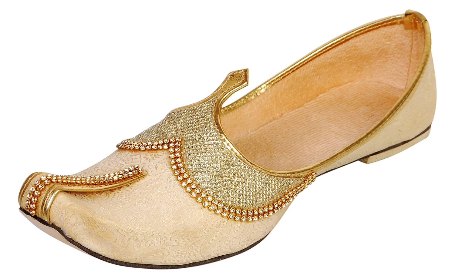 vision art JOPELLE Men's Golden Silk Sherwani Mojaris (Jutti)