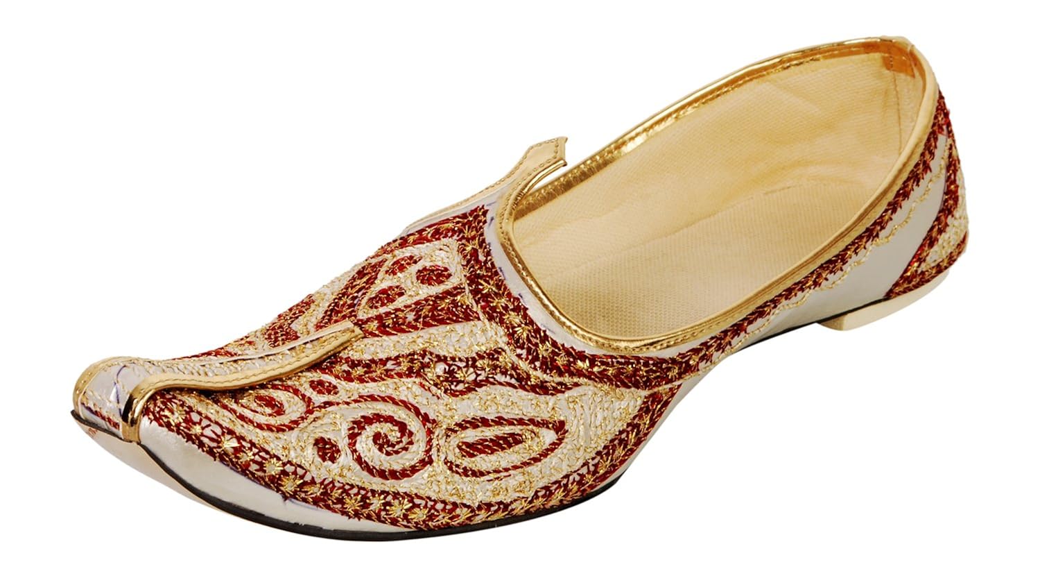 vision art JOPELLE Men's Beige & Red Wedding & Sherwani Mojaris