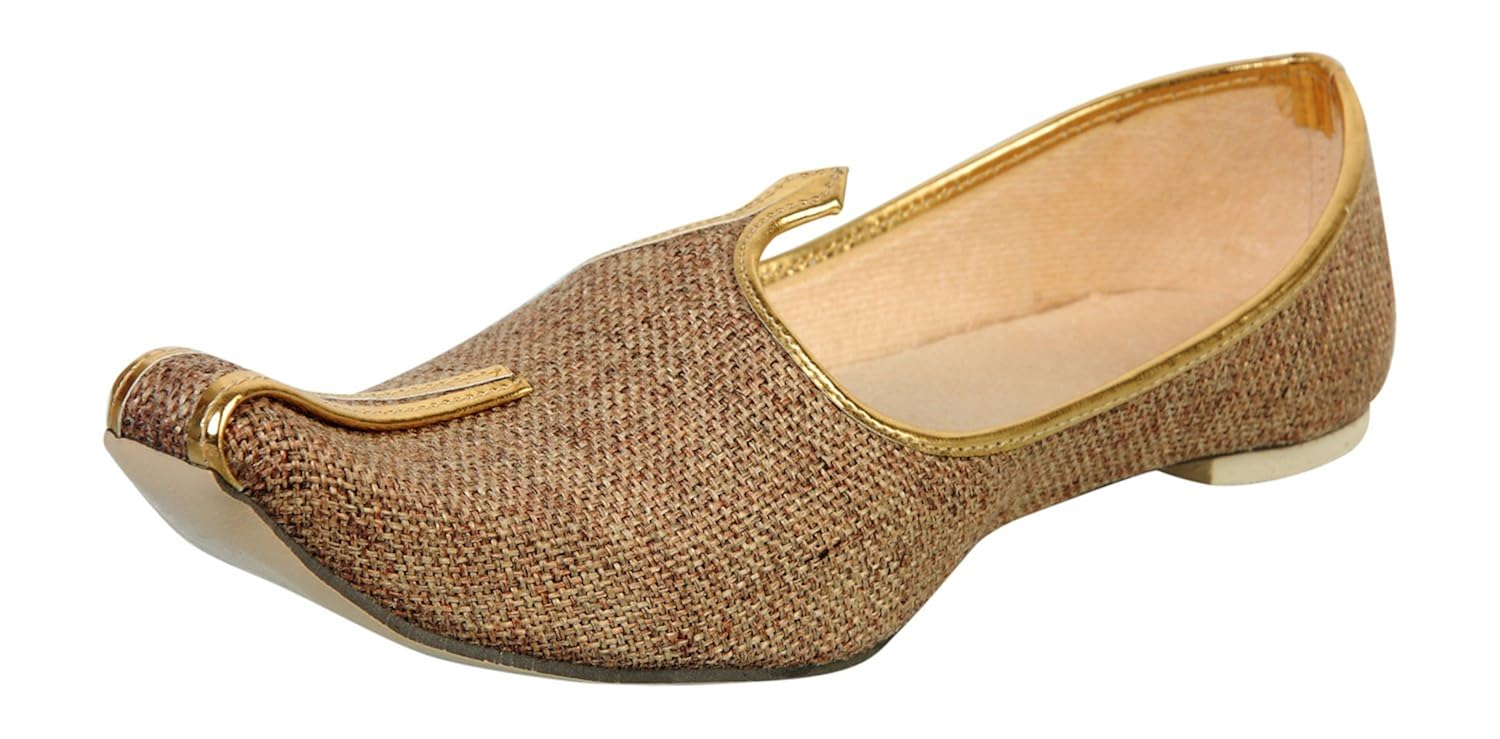 vision art JOPELLE Men's Brown & Golden Jute Sherwani Mojaris (Jutti)