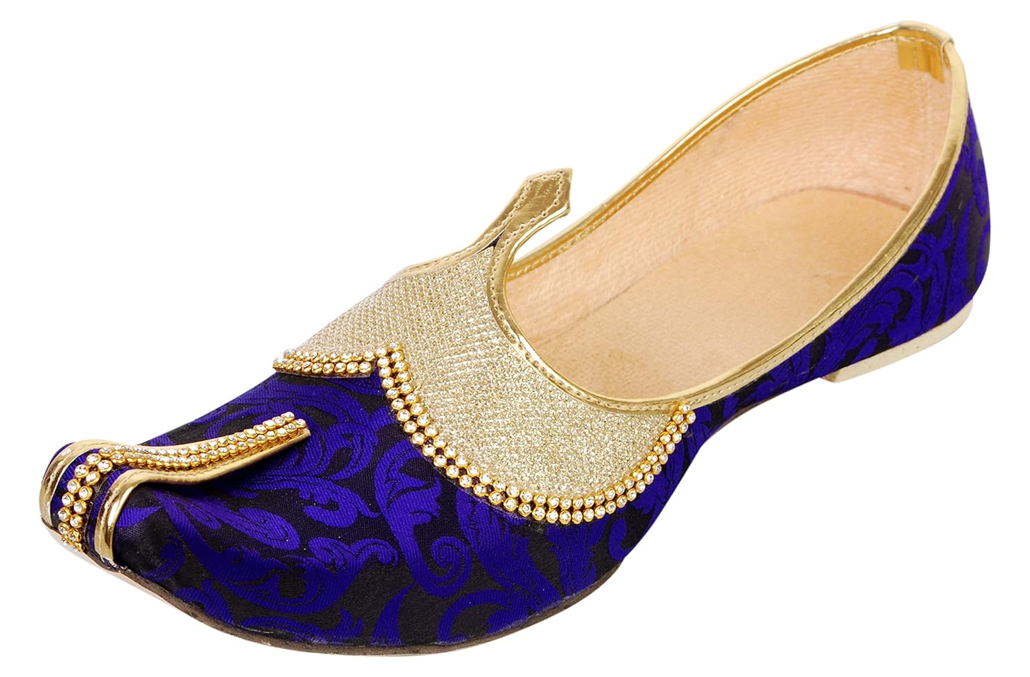 vision art JOPELLE Men's Blue Golden Silk Sherwani Mojaris (Jutti)