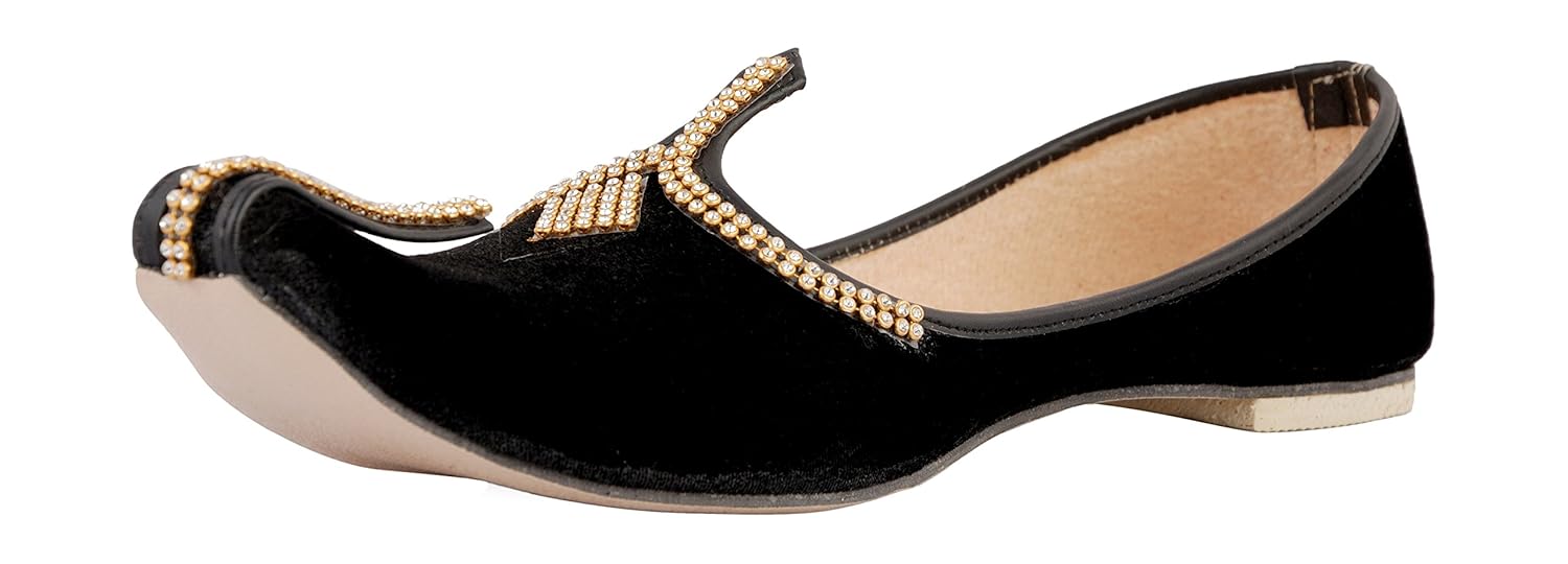 Vision Art JOPELLE Men's Black Valvat Silk Wedding & Sherwani Juttis