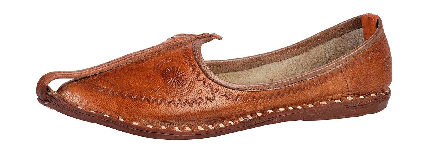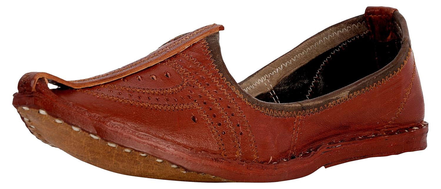 Vision Art JOPELLE Men's Brown Leather Traditional Juttis (Mojari's)