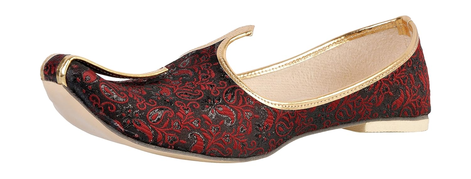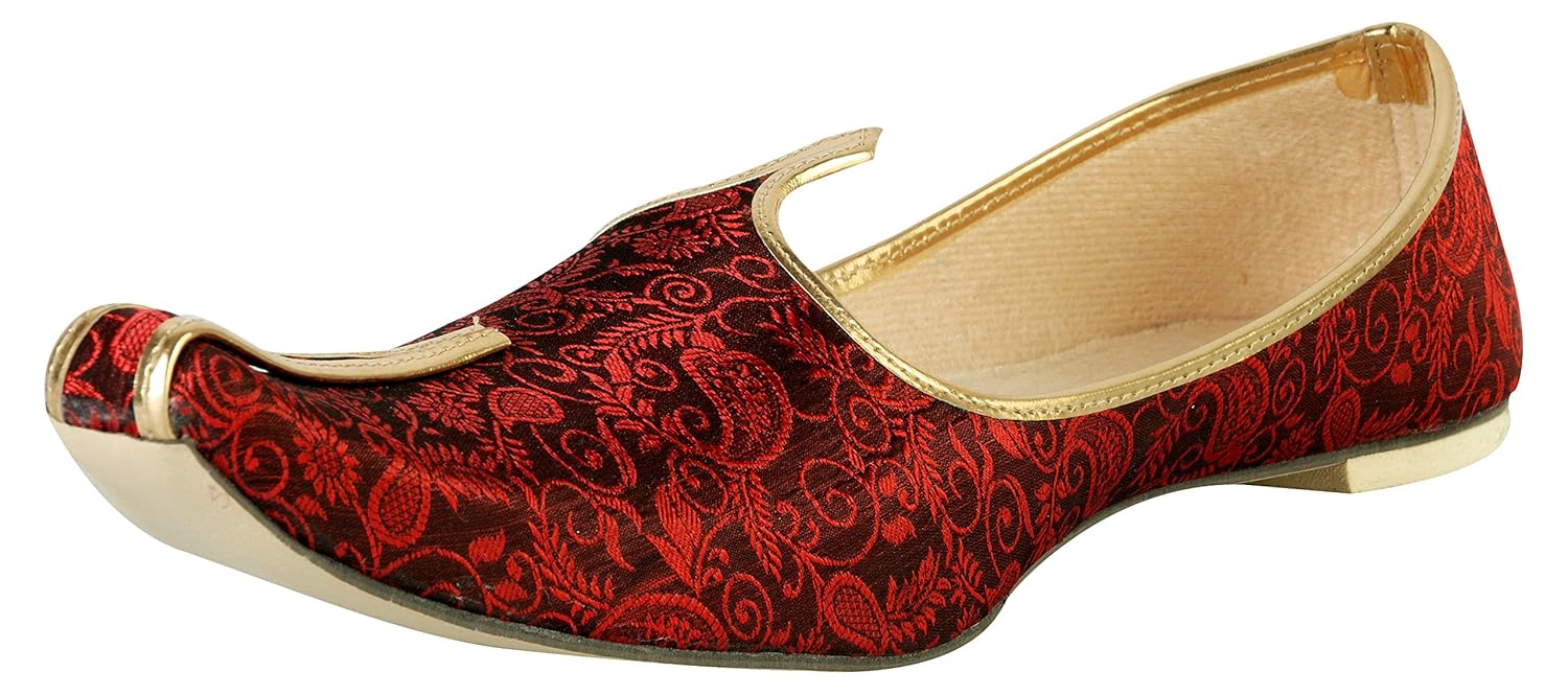 Vision Art JOPELLE Men's Maroon Wedding & Sherwani Juttis