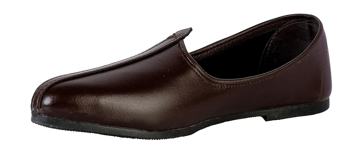 Vision Art JOPELLE Men's Plain Badgao Natural Leather Mojari (Juttis) Brown