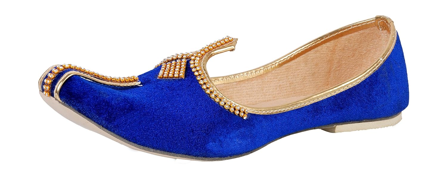 Vision Art JOPELLE Men's Blue Valvat Wedding & Sherwani Mojaris (Jutti)