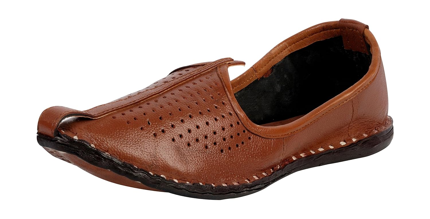 Vision Art JOPELLE Men's Holed Amber Leather Jodhpuri Mojaris