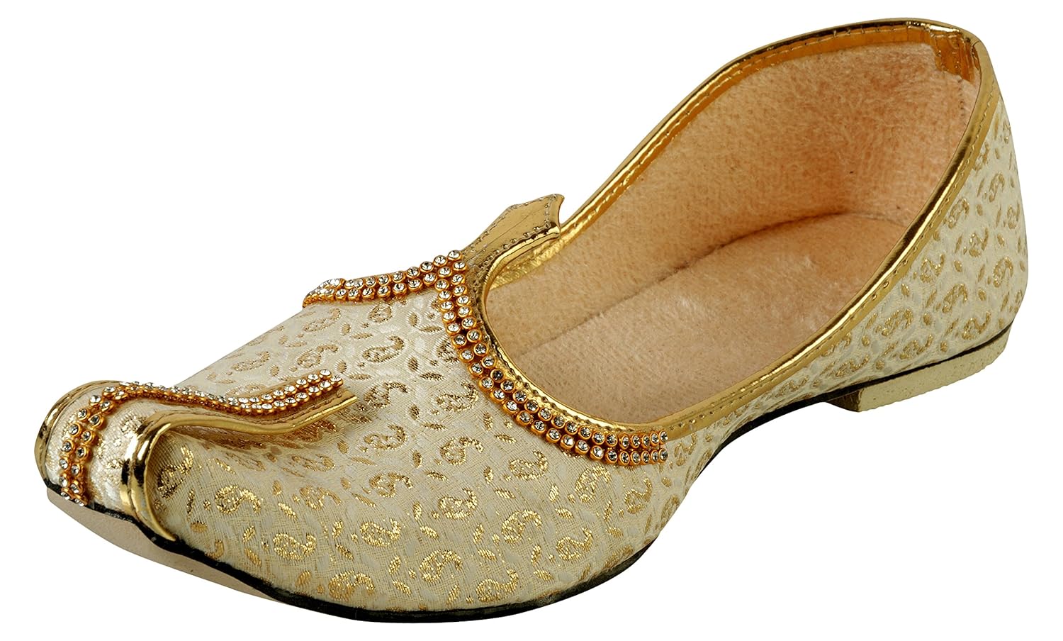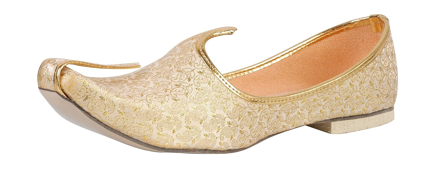 Vision Art JOPELLE Men's Golden Fabric Wedding & Sherwani Mojaris (Jutti)