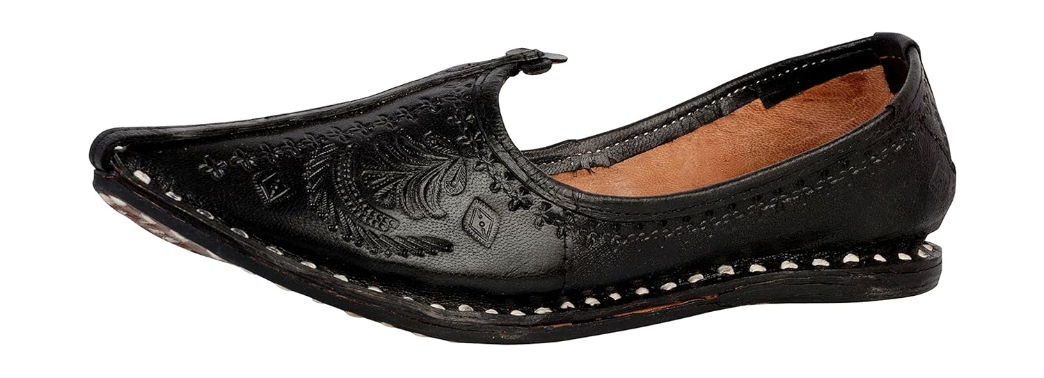Vision Art JOPELLE Men's Rajasthani Traditional Black Leather Mojaris (Jutt...