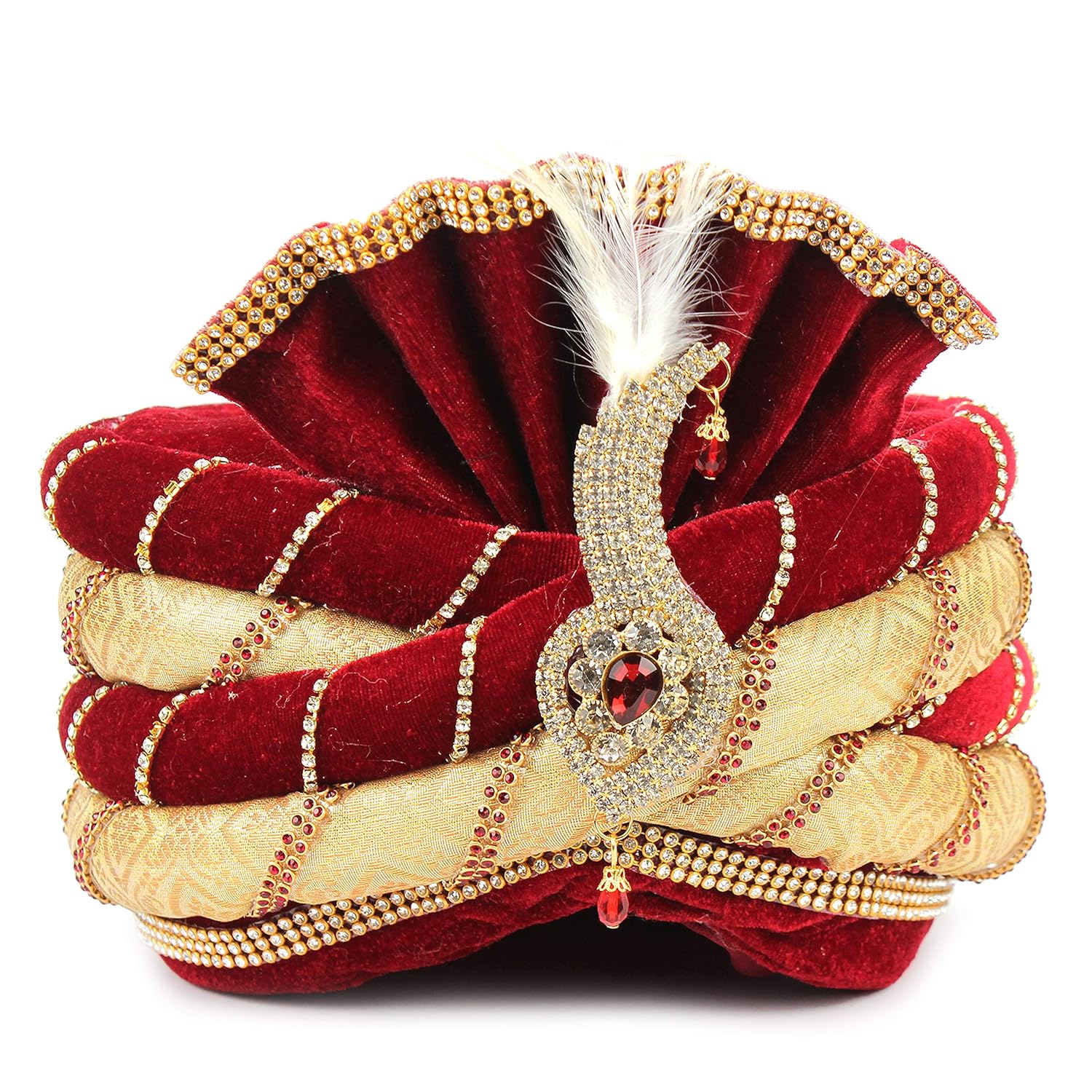 Aman Royal Dulha Collection Men's Velvet Traditional and Ethnic Pagdi for B...
