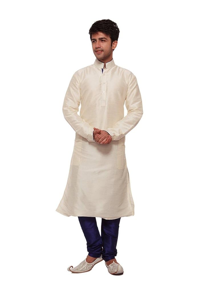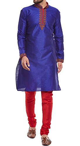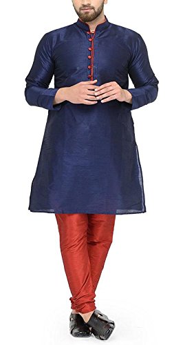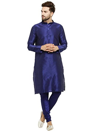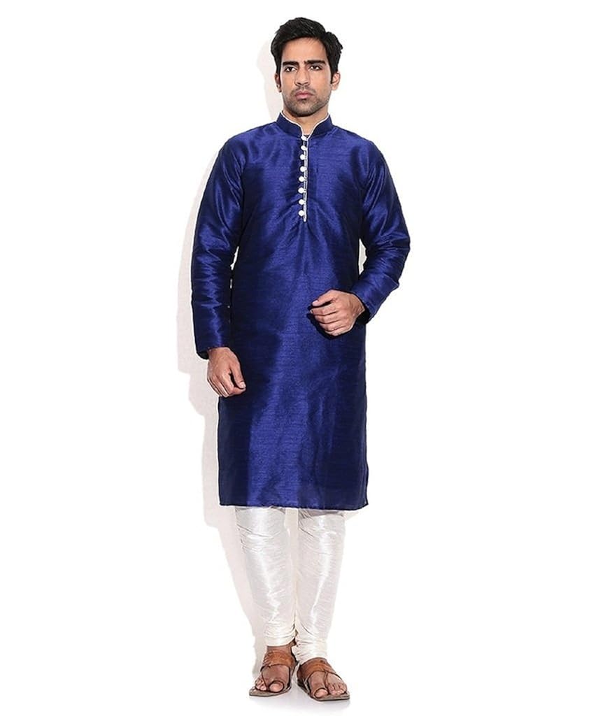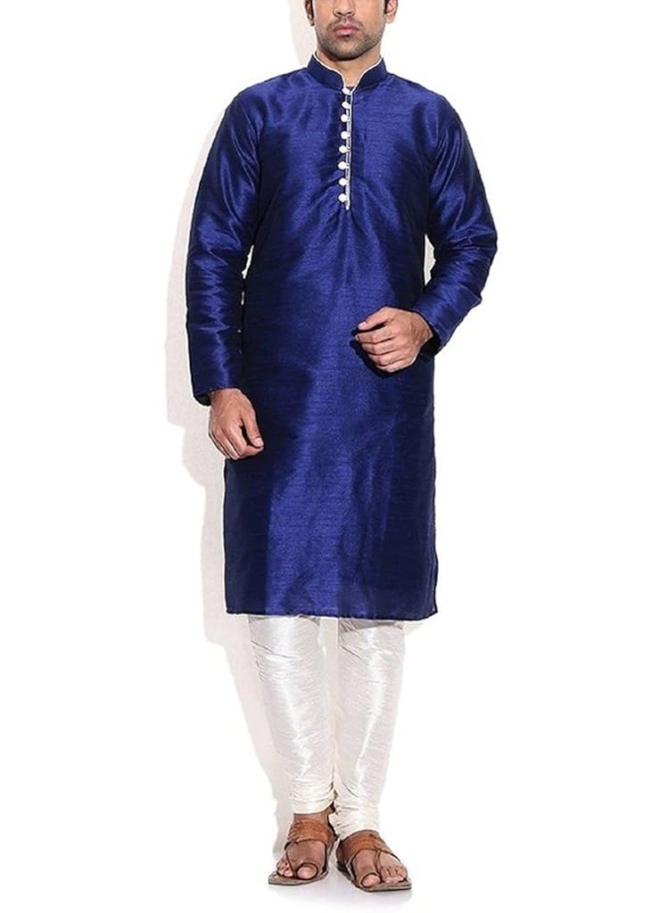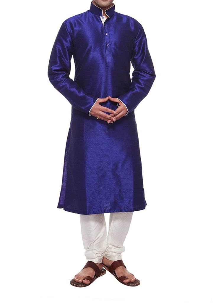 Larwa Men's silk solid Kurta Pyjama Set,Blue