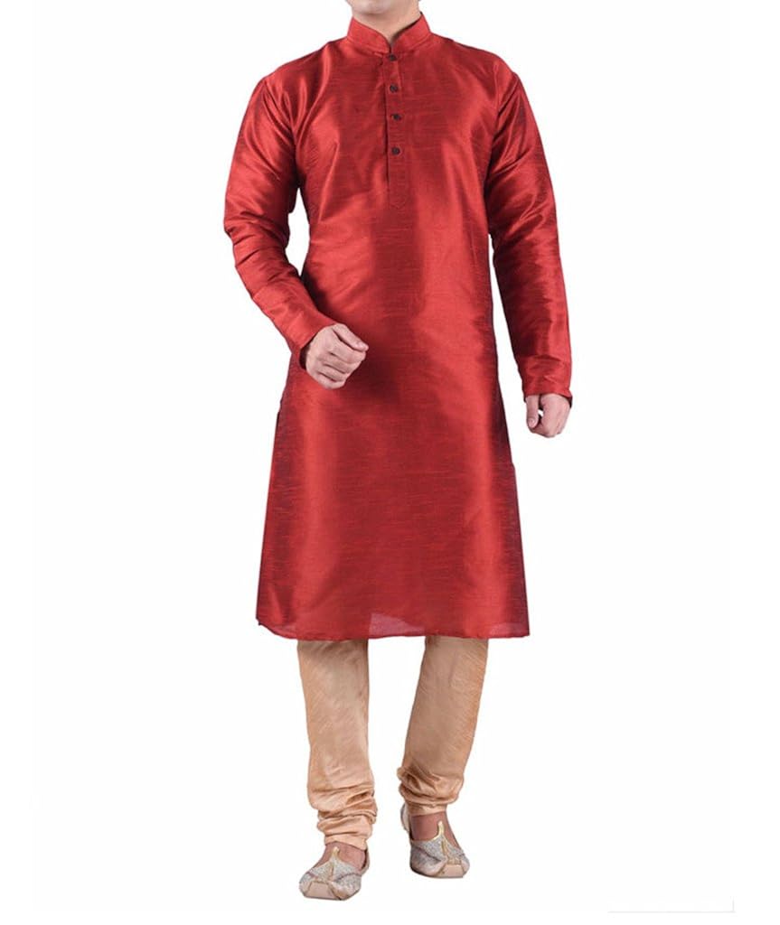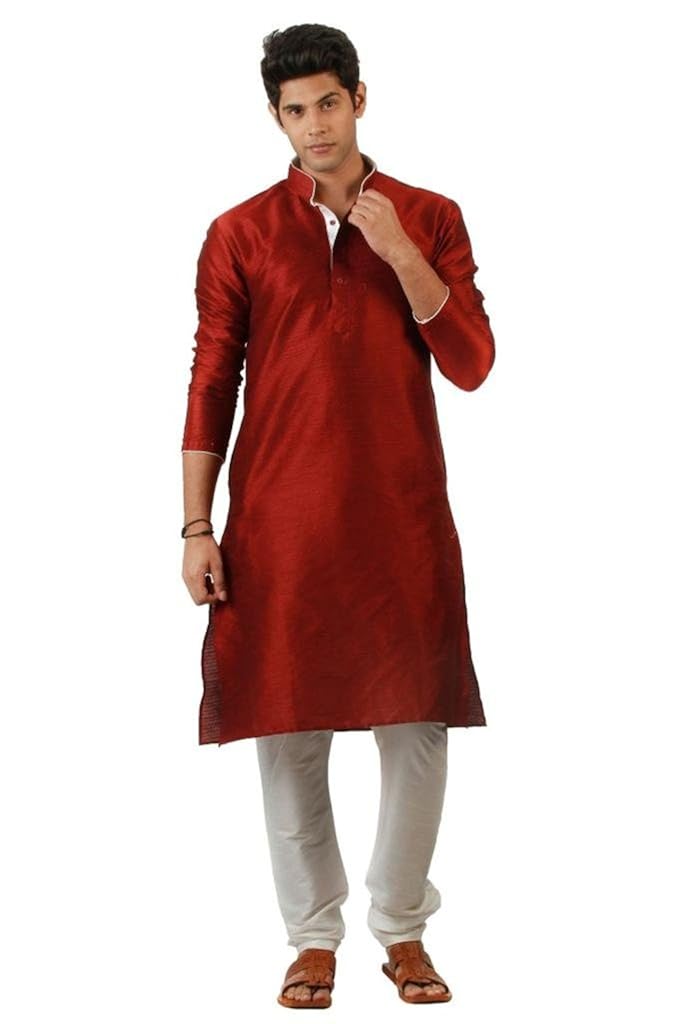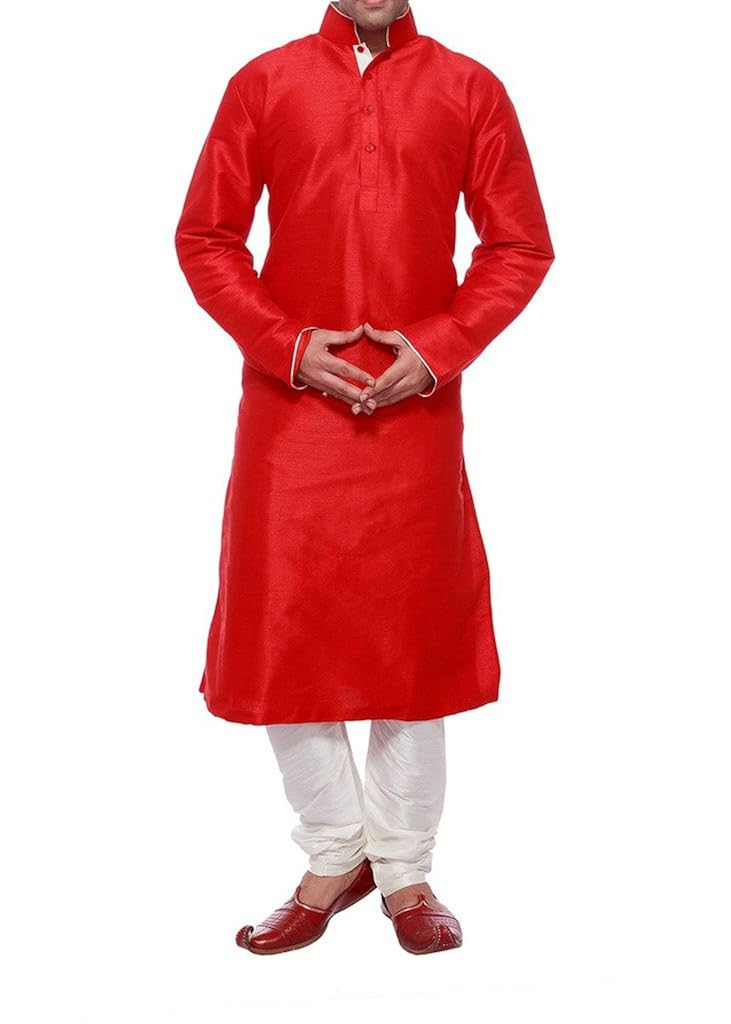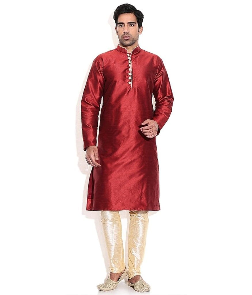 Larwa Red Festive Silk Long Kurta Pyjama Set