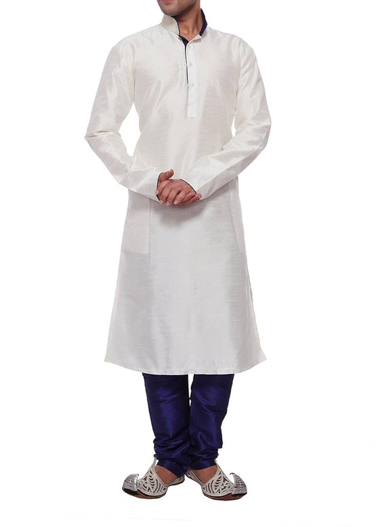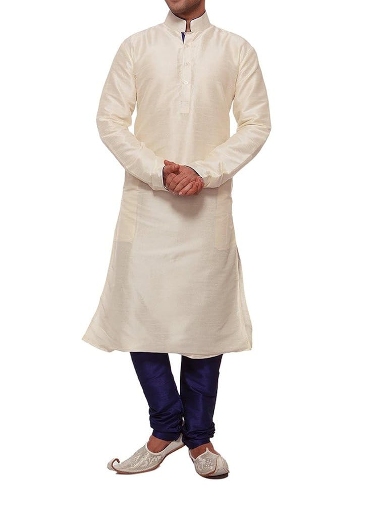 Larwa Cream Festive Silk Long Kurta Pyjama Set