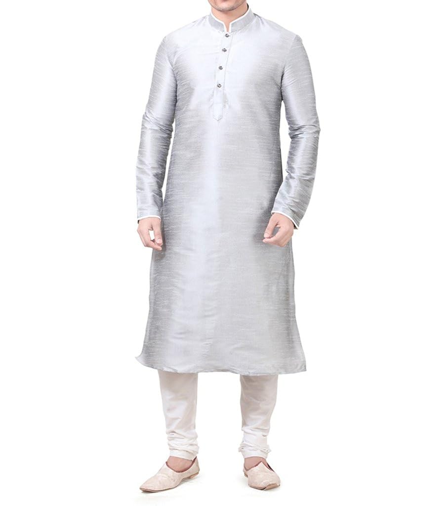 Larwa White Festive Silk Long Kurta Pyjama Set