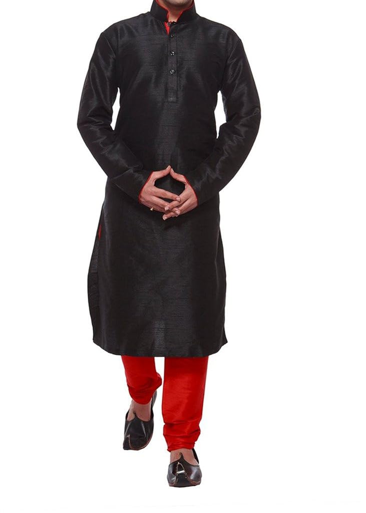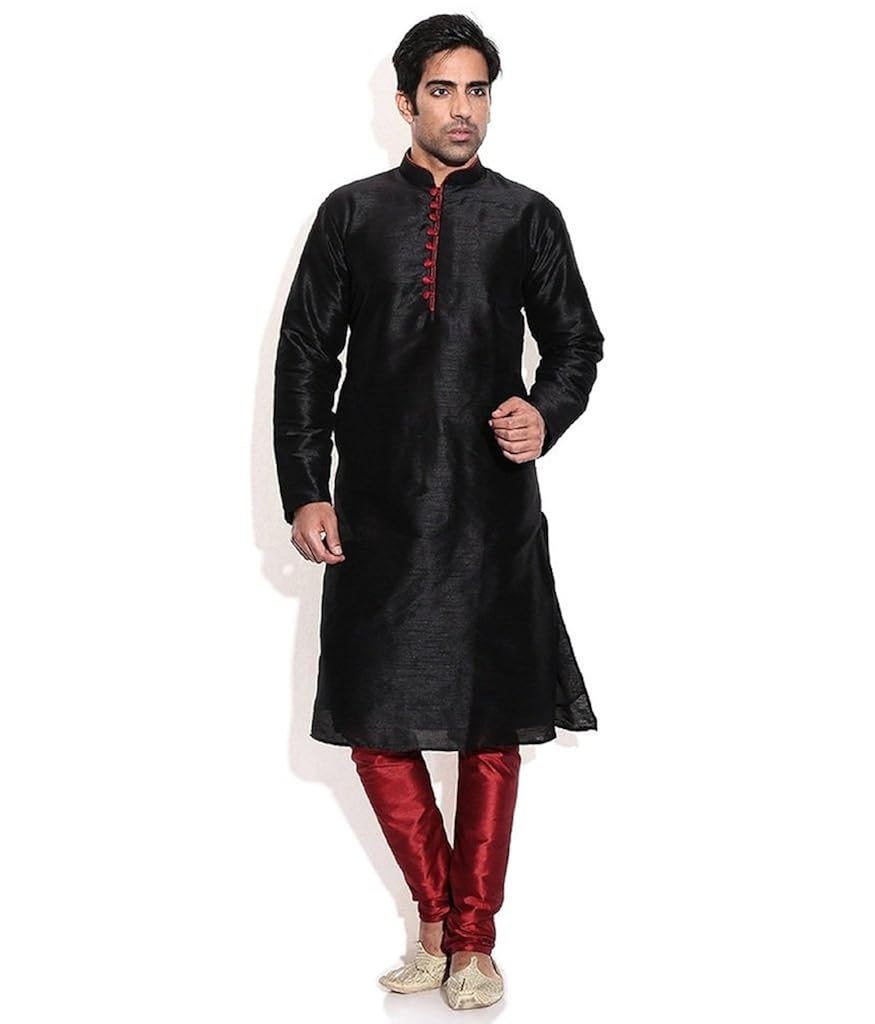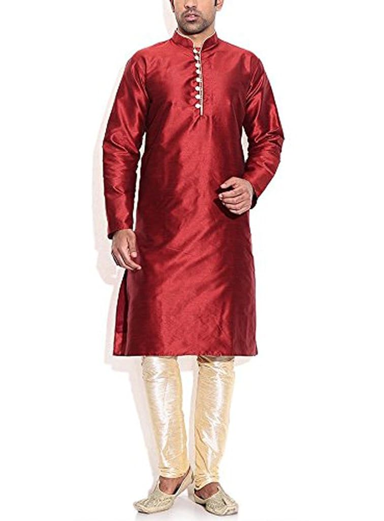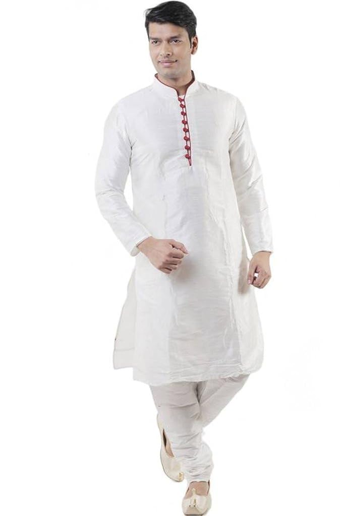 Larwa Solid Men's Silk Long Kurta & Pyjami Set