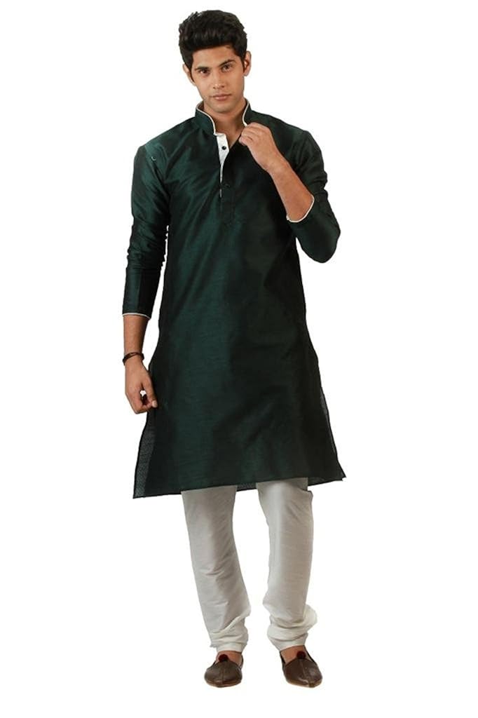 Larwa Men's Festive Silk Long Kurta and Pyjami Set
