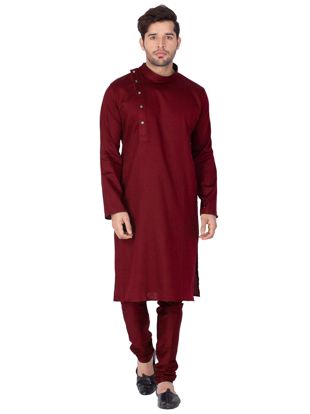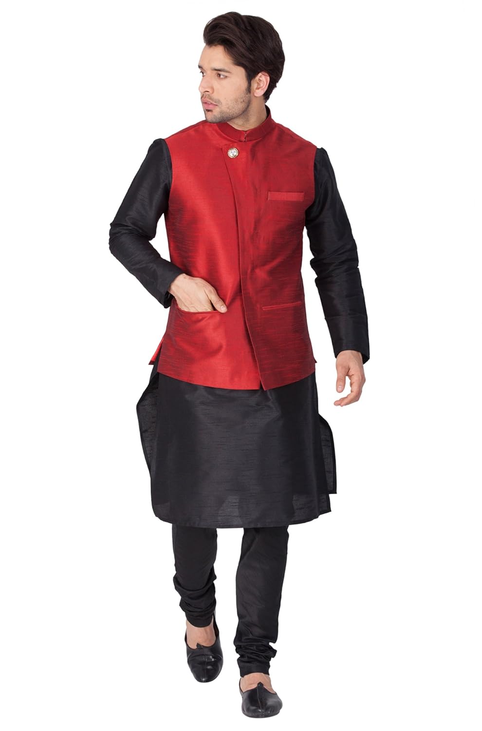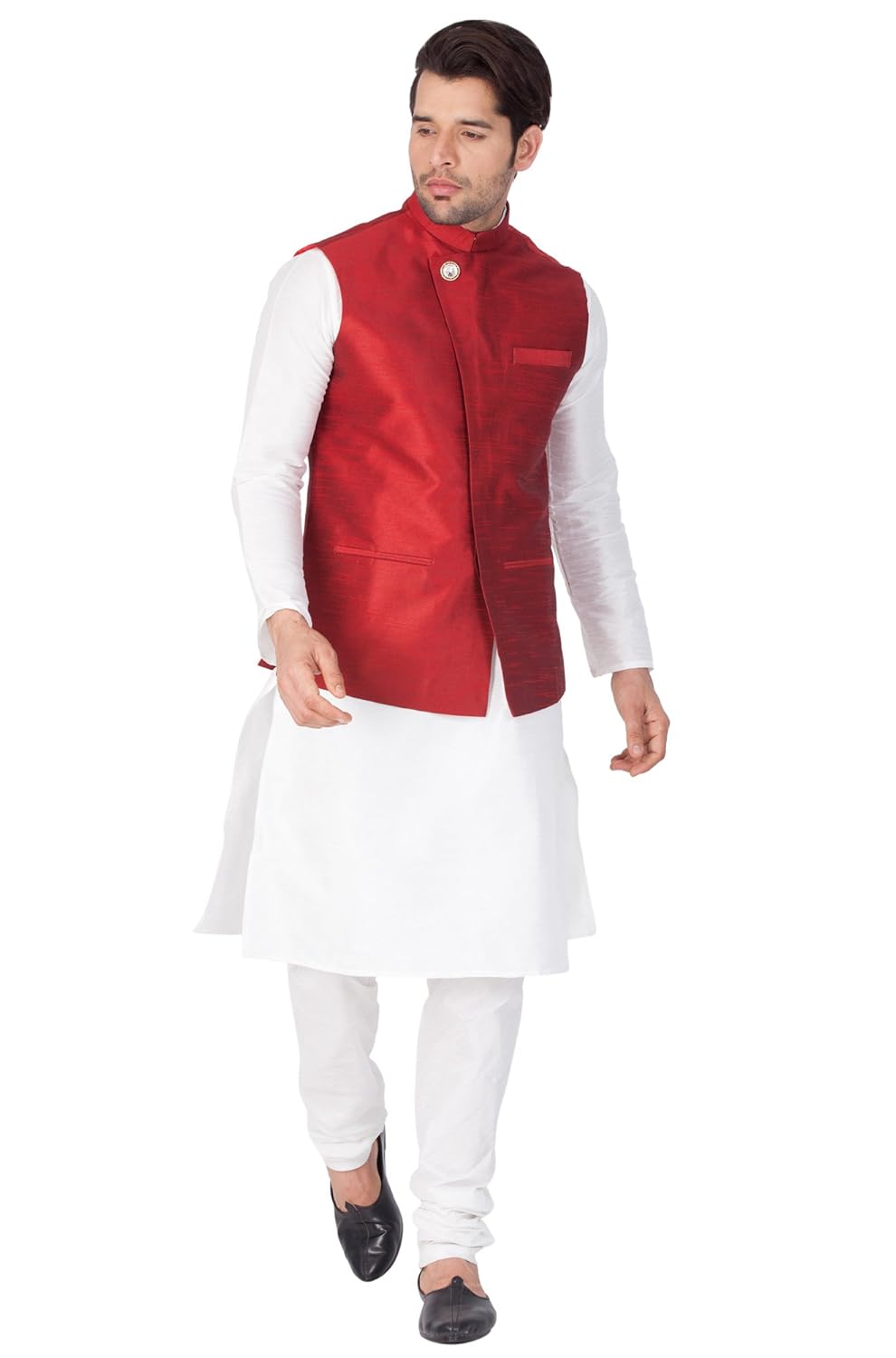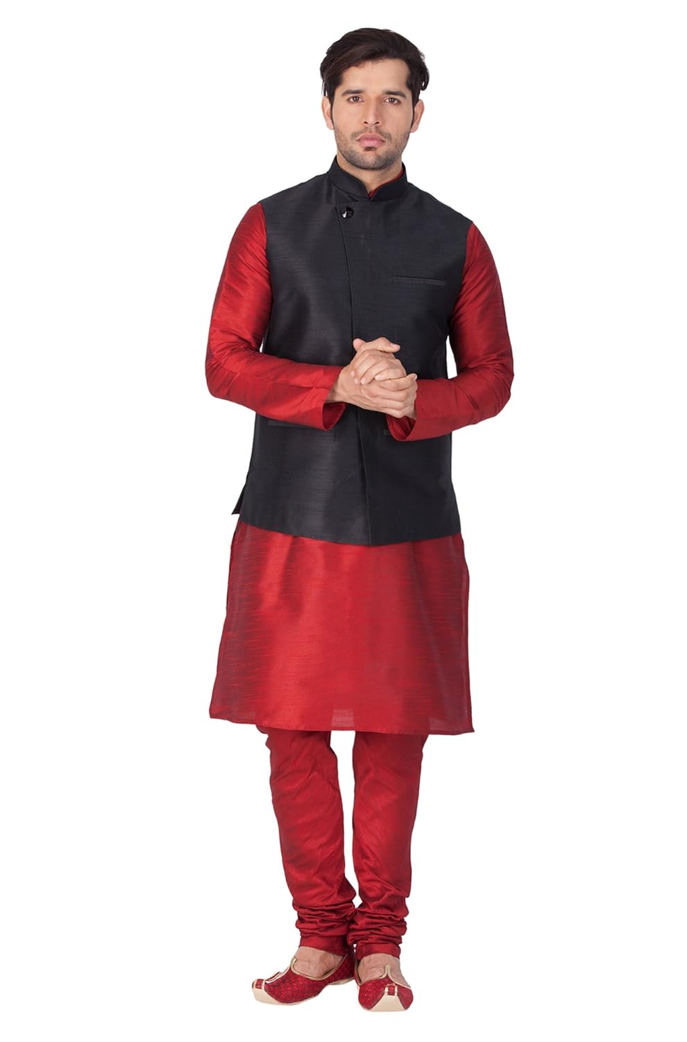 Vastramay Mens Cotton Silk Kurta, Waistcoat and Pyjama Set (Maroon_VASMJ04B...