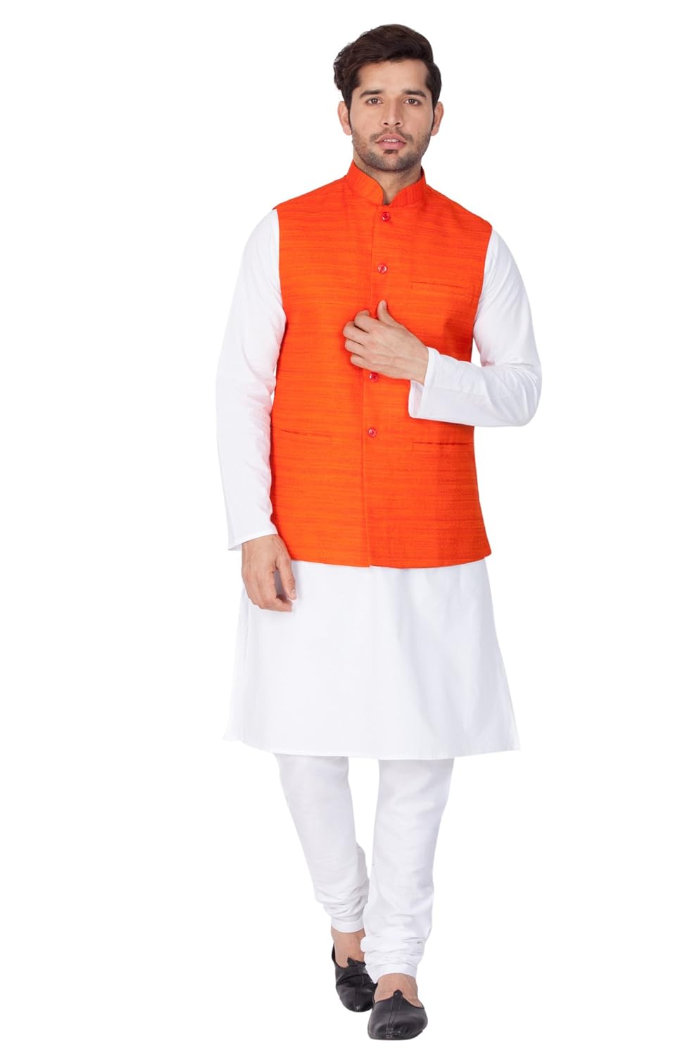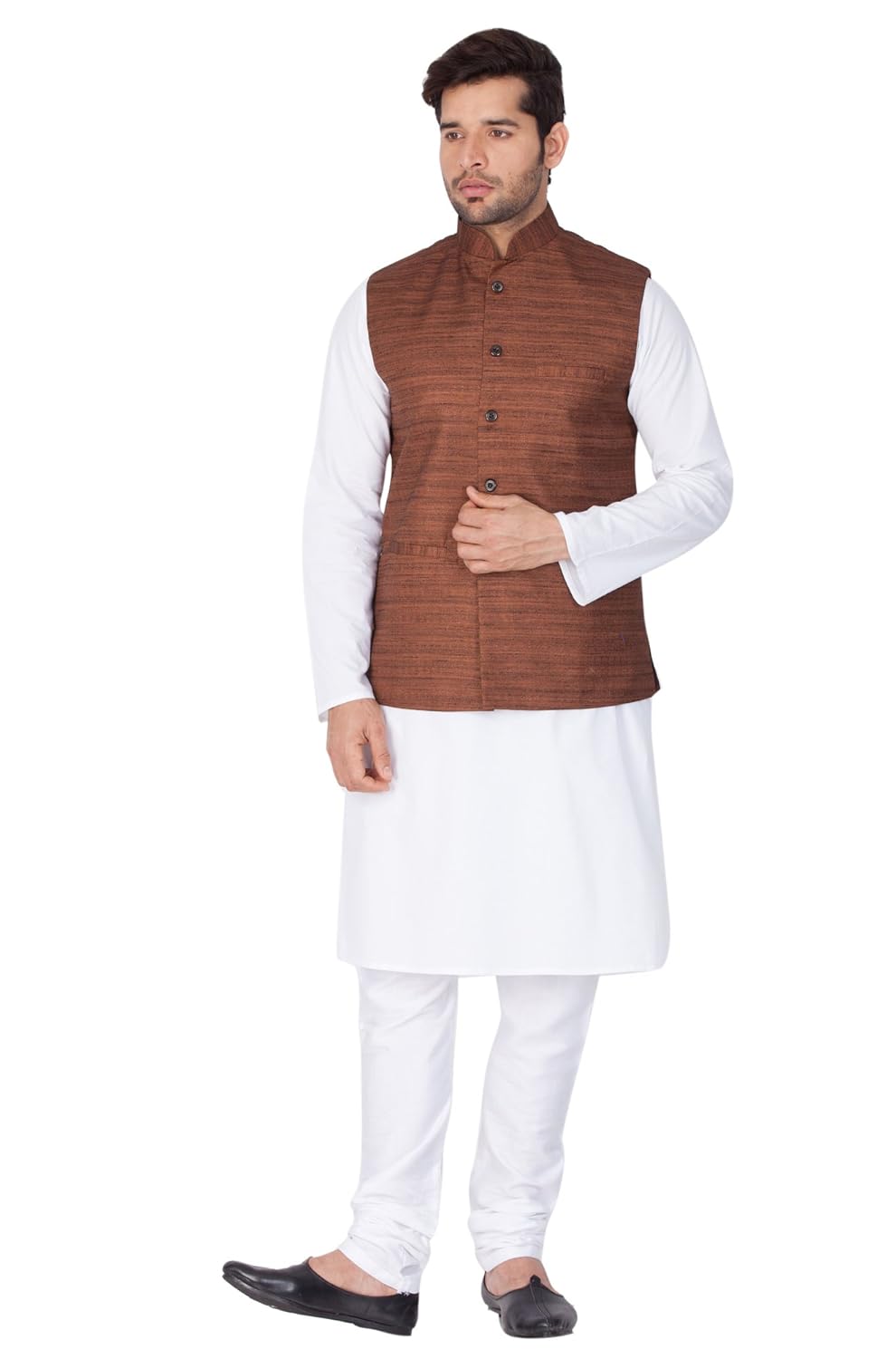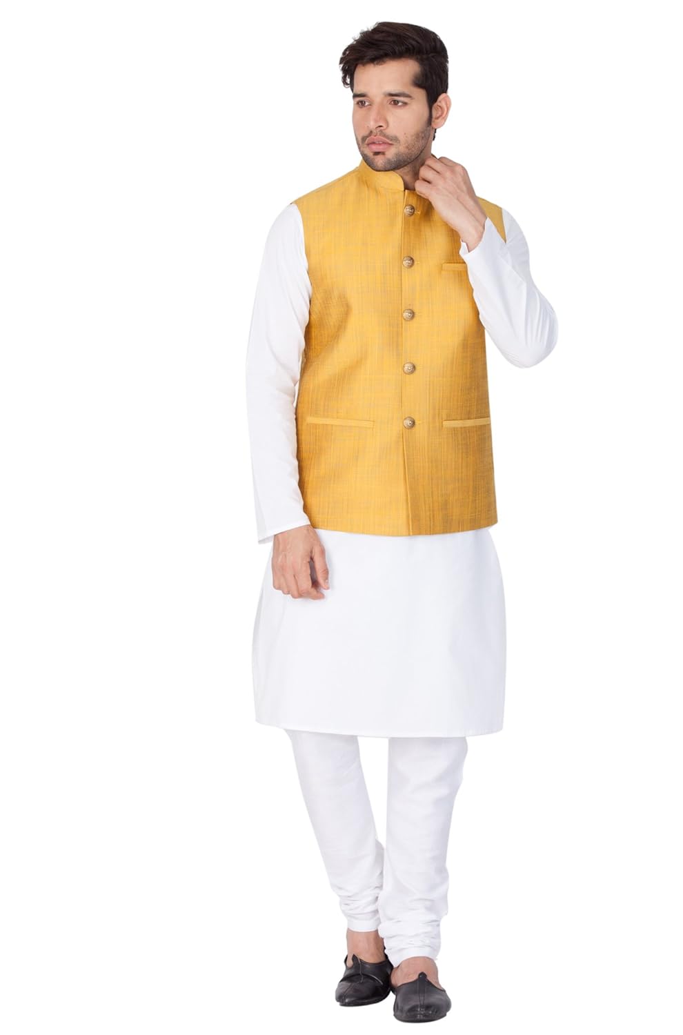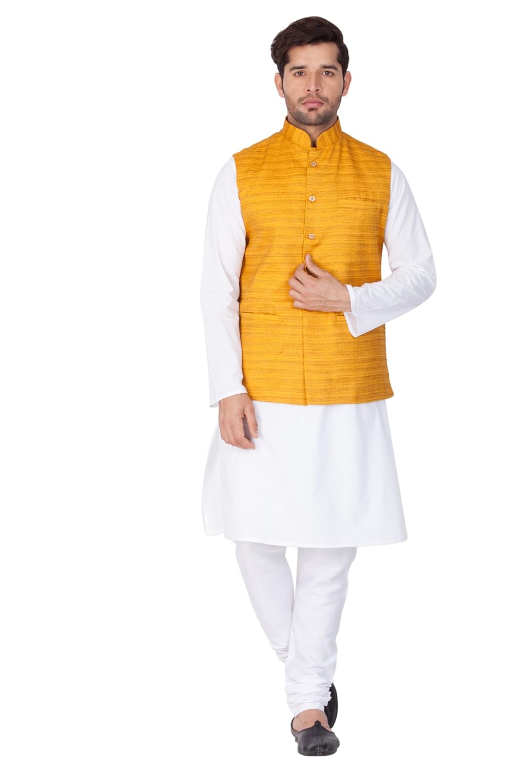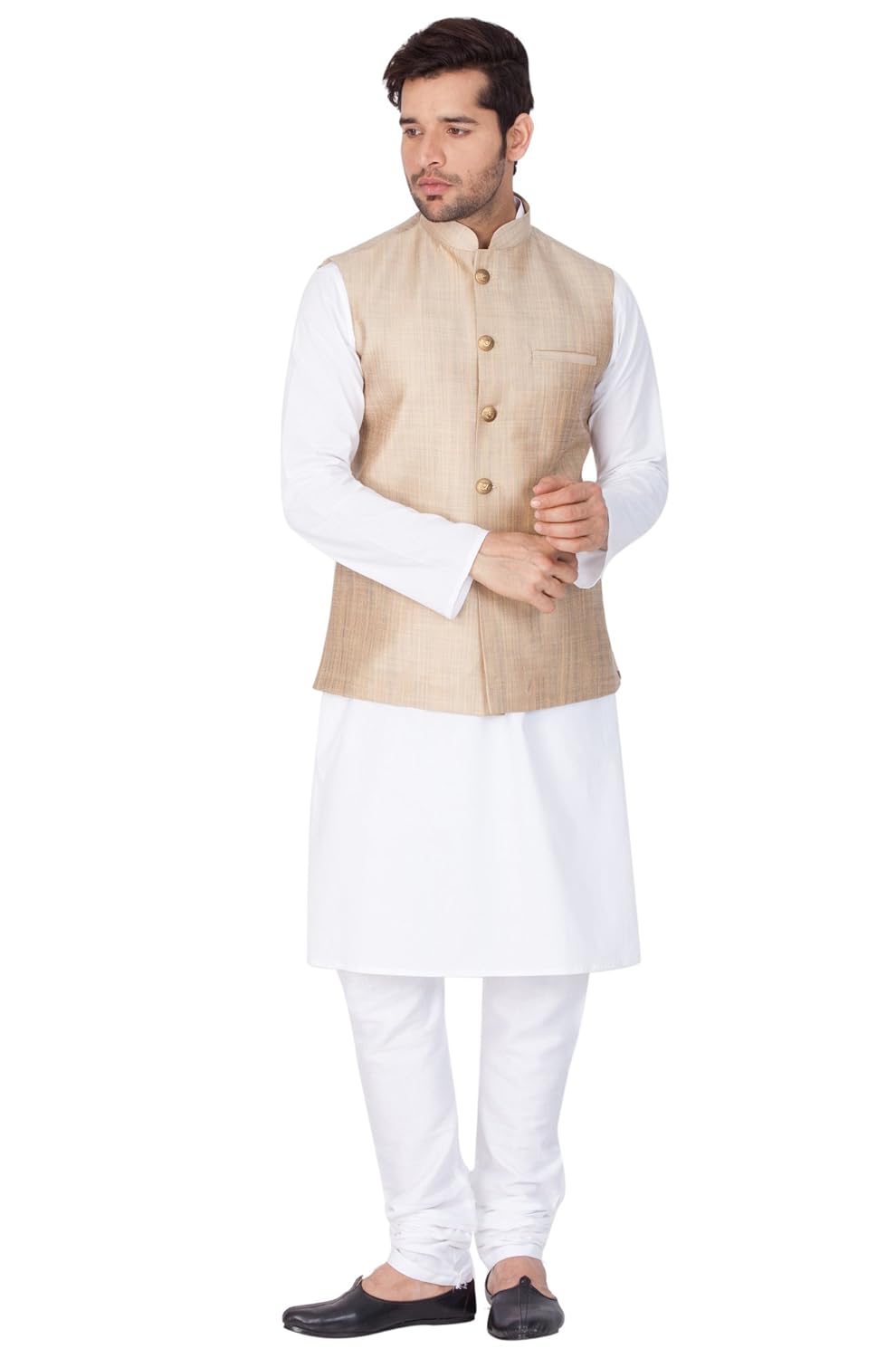 Vastramay Men Cotton Kurta Modi Jacket and Pyjama Set (White_VASMJ002YWnKWH...