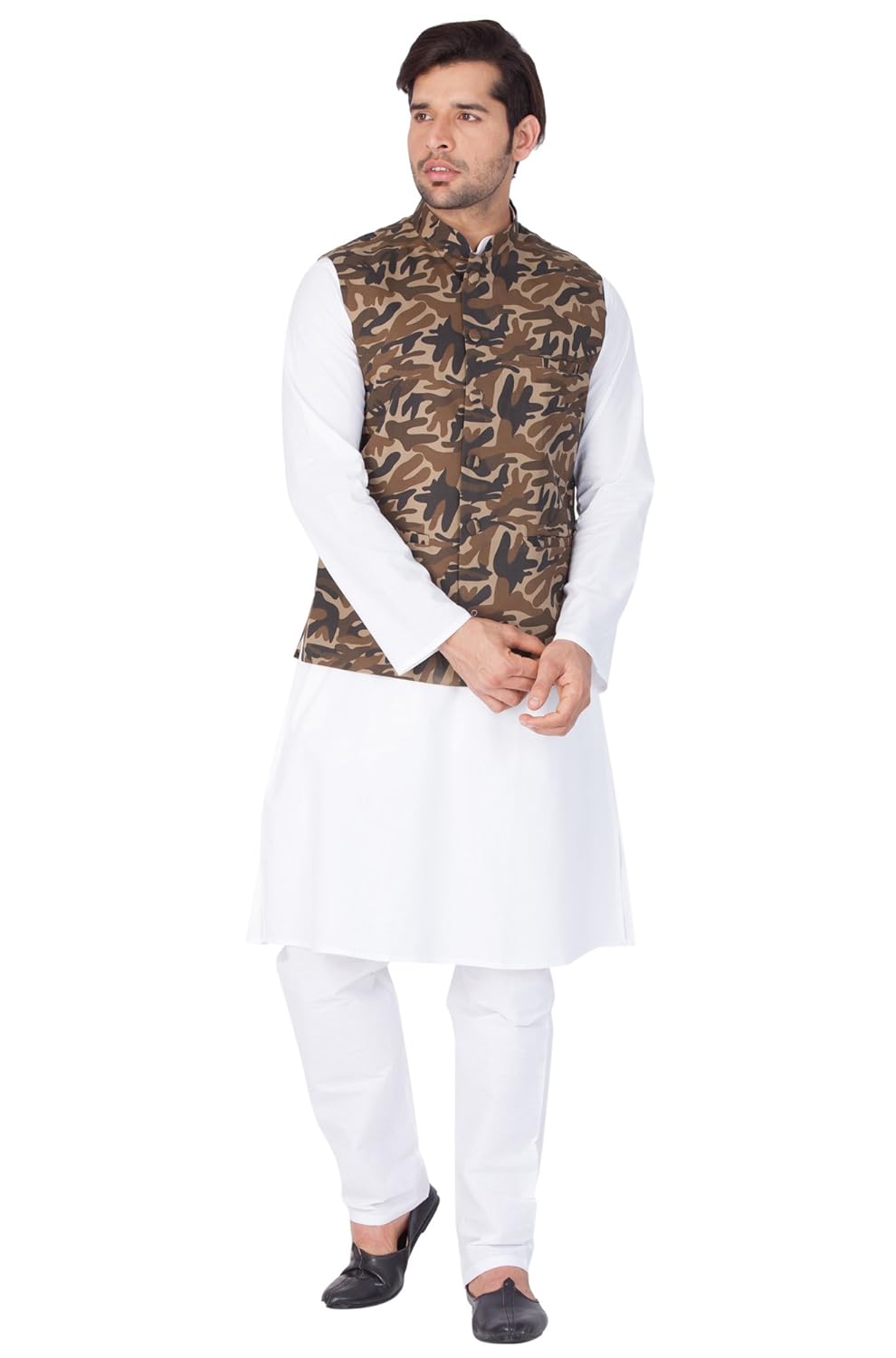 Vastramay Men Cotton Kurta Modi Jacket and Pyjama Set (White_VASMJ008YWnKWH...
