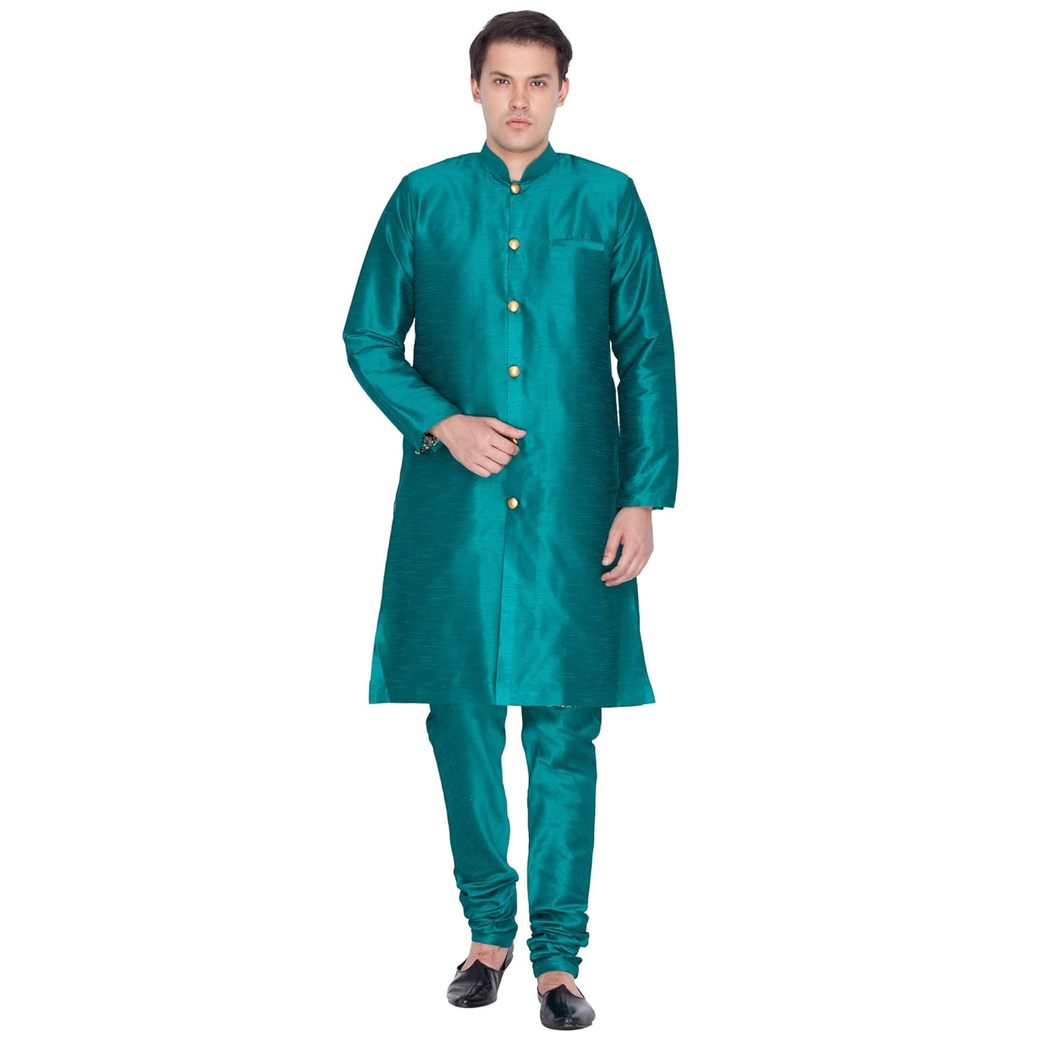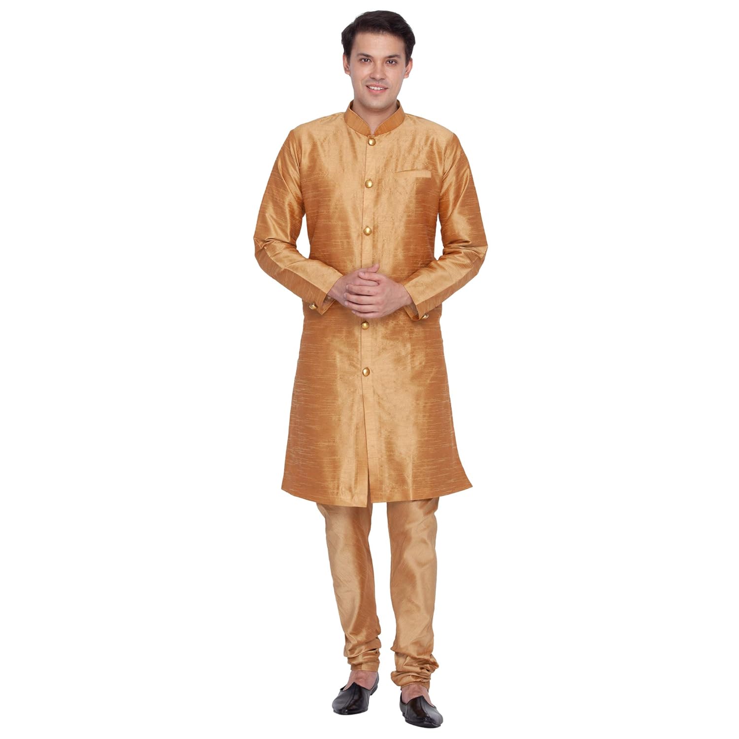 VASTRAMAY Men Silk Sherwani Style Kurta Set Ethnicwear (VASMKGN006nPGN Colo...
