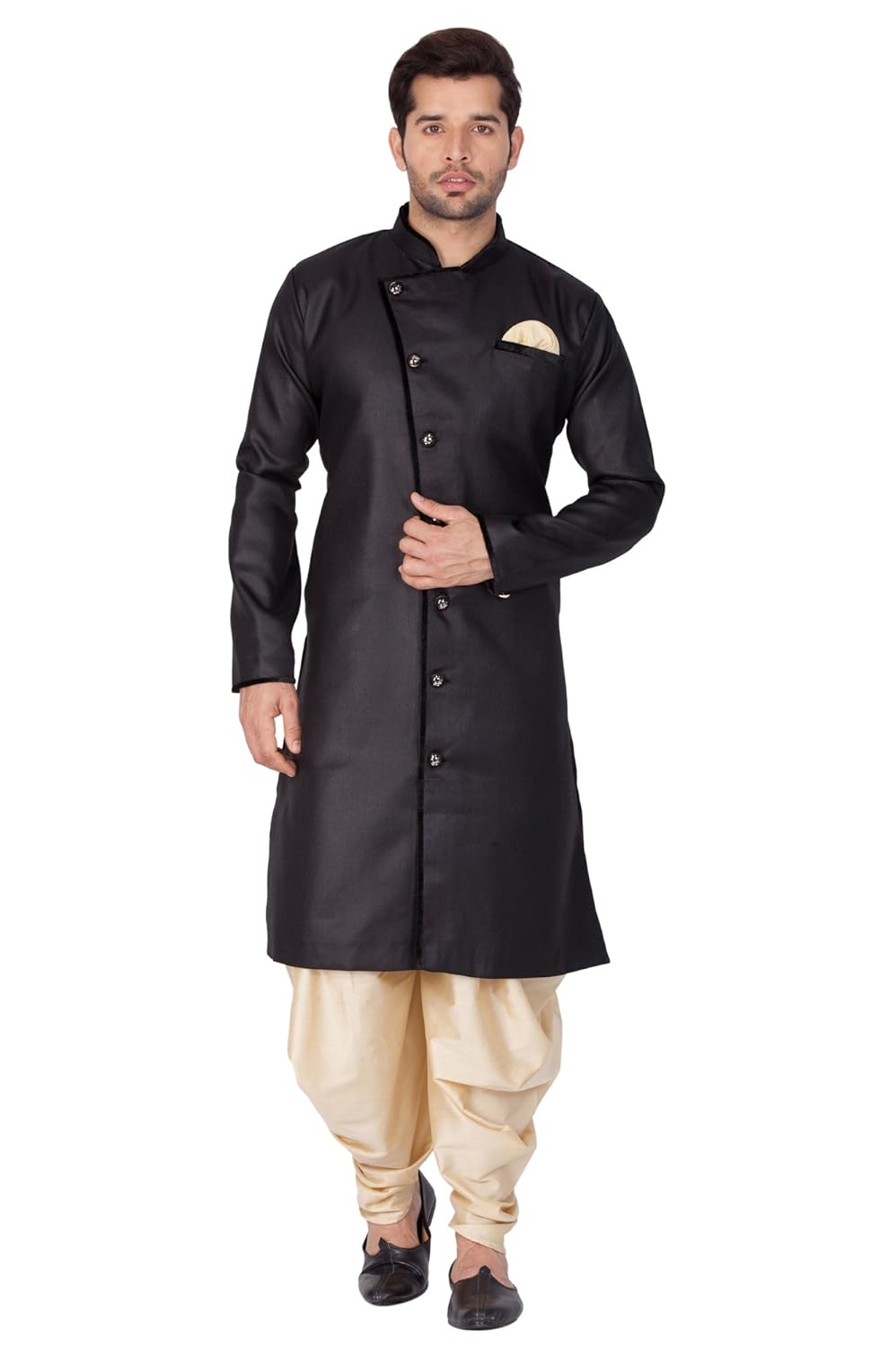Vastramay Men Cotton Silk Kurta Modi Jacket and Pyjama Set (Black_VASMJ002B...