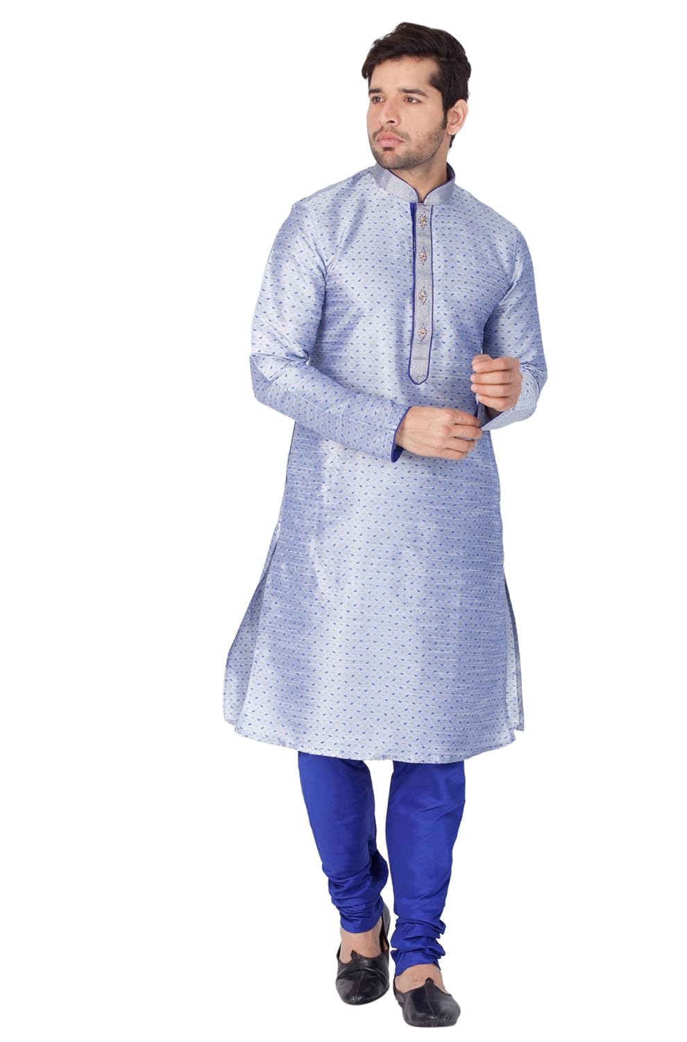 VASTRAMAY Men Cotton Silk Kurta and Pyjama Set (Bluish White_VASMKHA005nPBU...