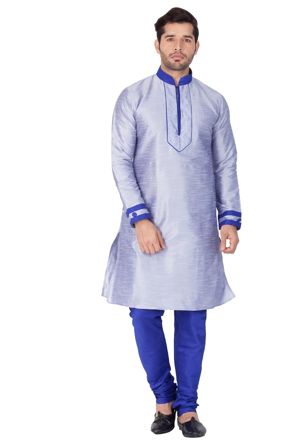 Vastramay Men Cotton Silk Kurta and Pyjama Set (Bluish White_VASMK021HAnPBU...