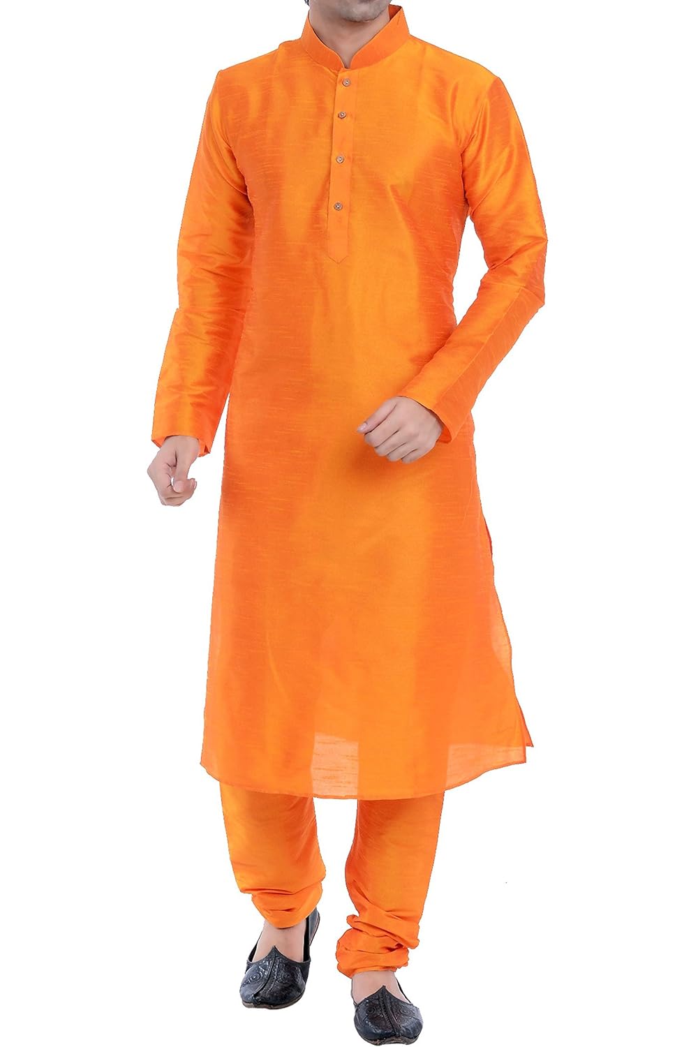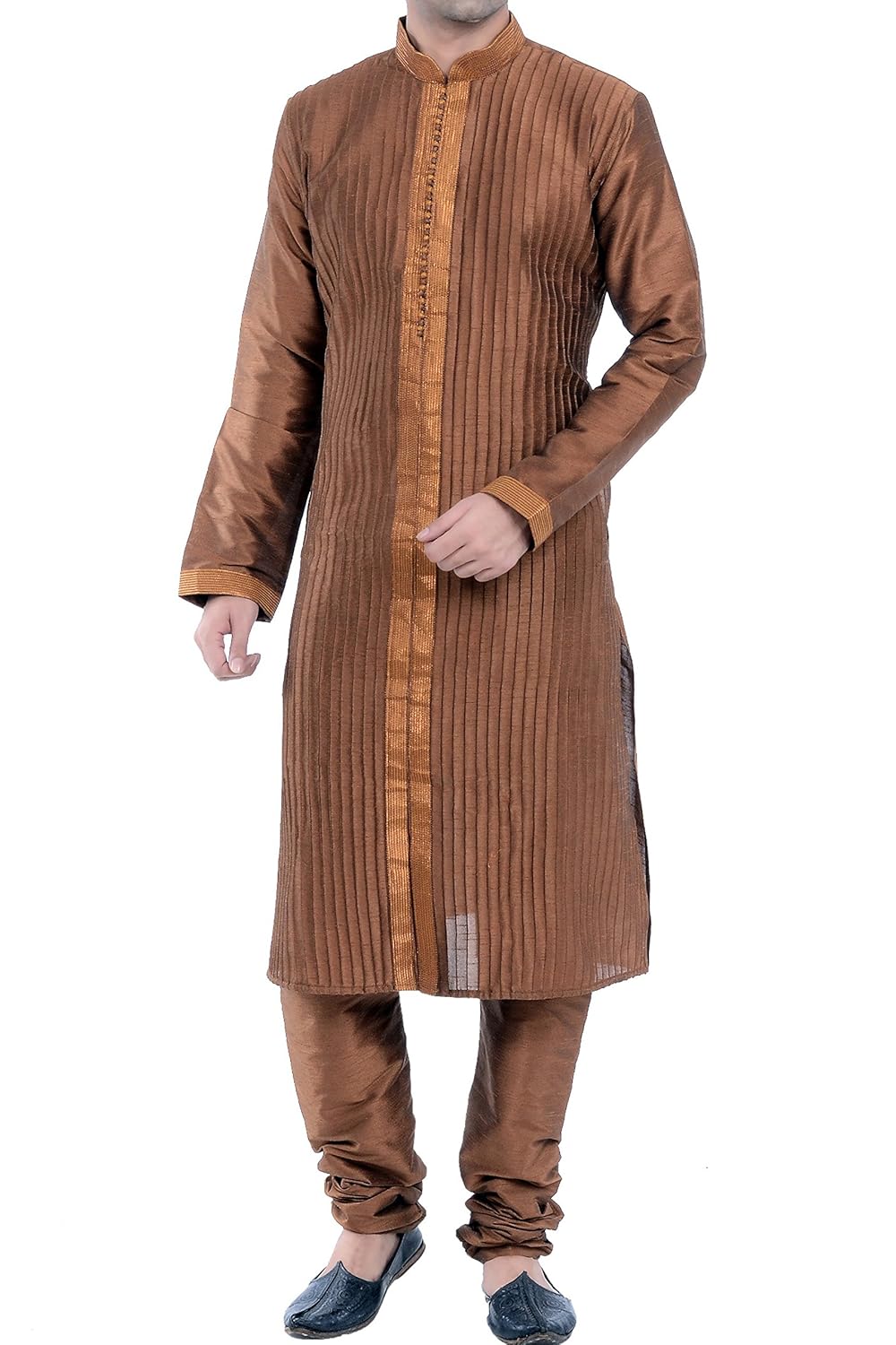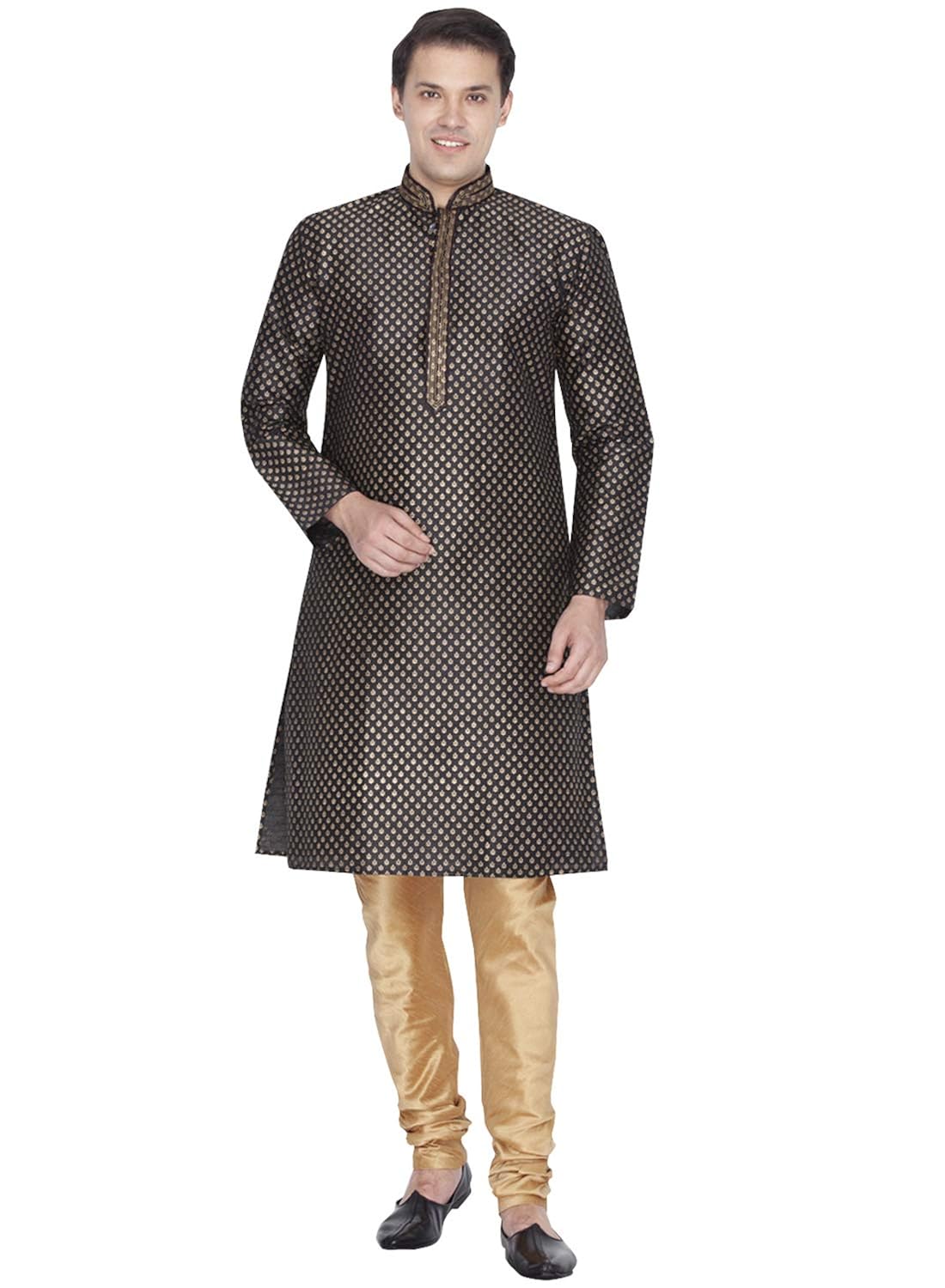 Vastramay Men Gold Cotton Silk Kurta and Cow Style Dhoti Pant set (VASMUK00...