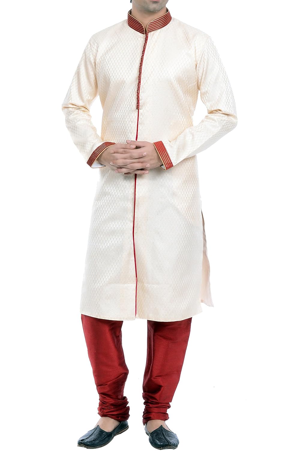 Vastramay Men Cotton Silk Kurta and Cowl Dhoti Pant Set (Maroon_VASMKMA001n...