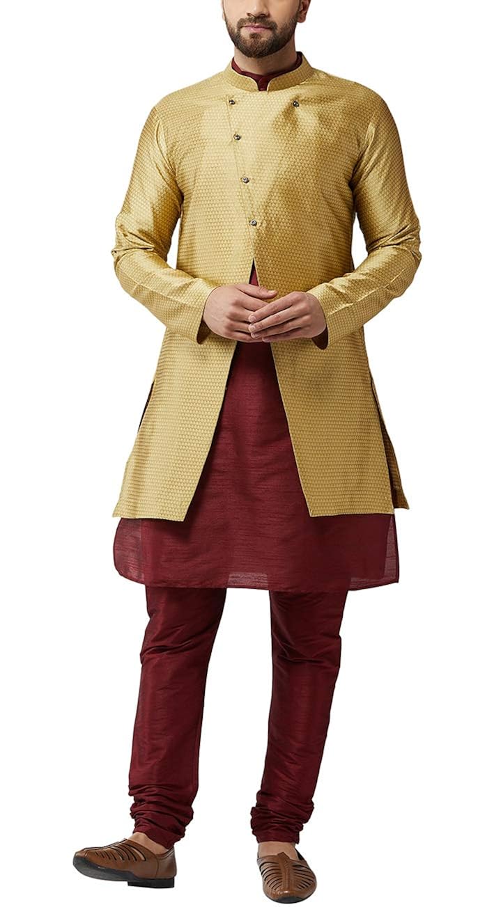 Sojanya (Since 1958), Men's Silk Blend Kurta Churidaar Pyjama & Jacket COMB...