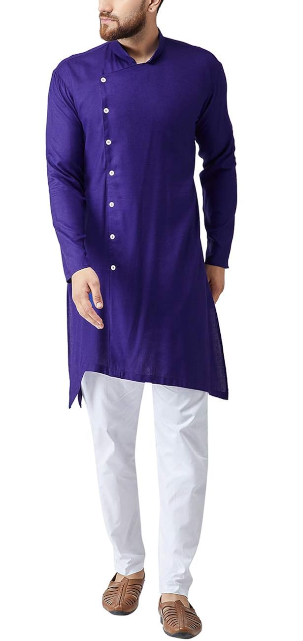 Sojanya (Since 1958) Men's Royal Blue & Black Silk Kurta & Churidar Pyjama ...
