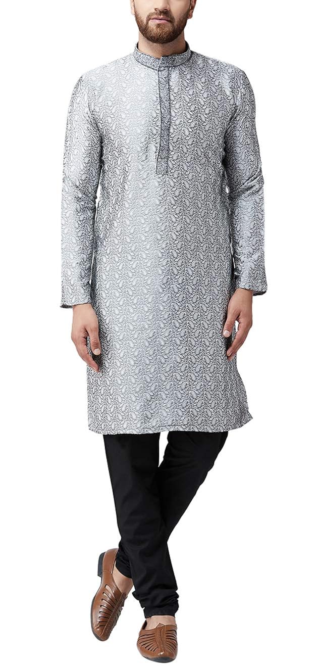 Sojanya (Since 1958), Men's Navy Blue and Grey Silk Blend Kurta Pyjama & Ne...