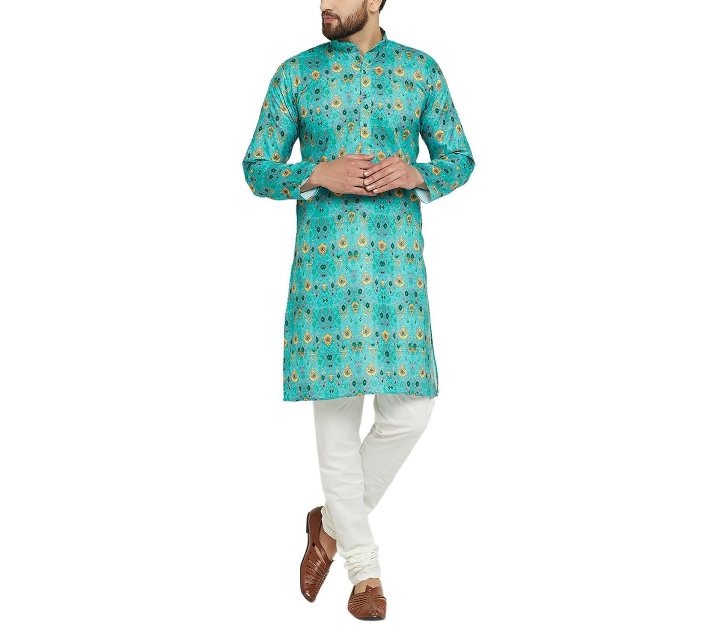 Sojanya Men's Cotton Linen Kurta Pyjamas Set (Sjr-Print-003-40_Multicolor_L...