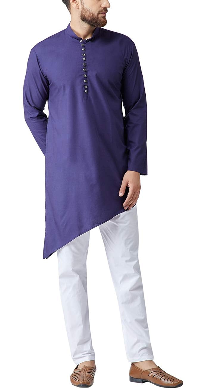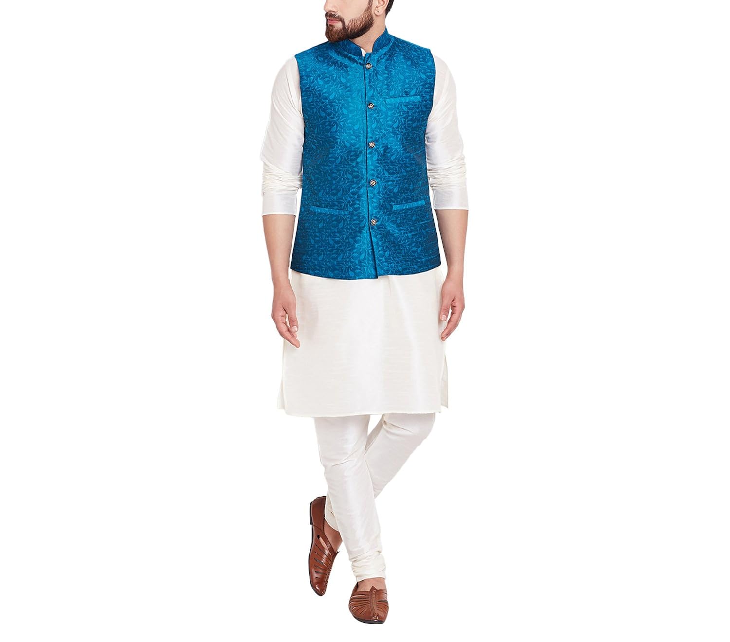 Sojanya (Since 1958), Men's Cream and Blue Silk Blend Kurta Pyjama & Nehru ...