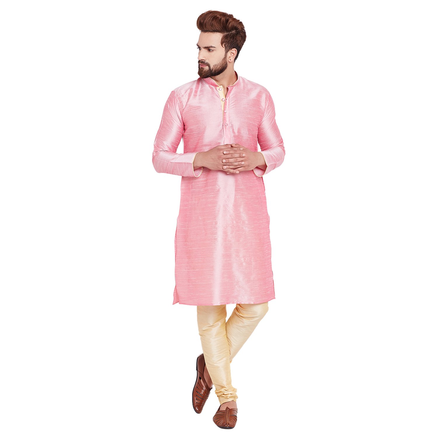 Sojanya (Since 1958), Men's Cream and Pink Silk Blend Kurta Pyjama & Nehru ...
