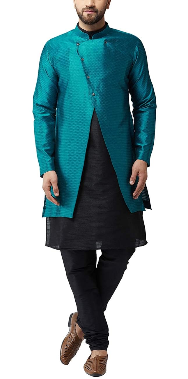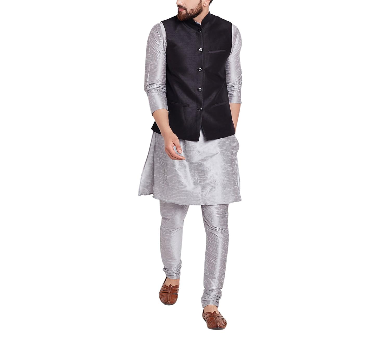 Sojanya (Since 1958), Men's Silk Blend Kurta Churidaar Pyjama & Jacket COMB...