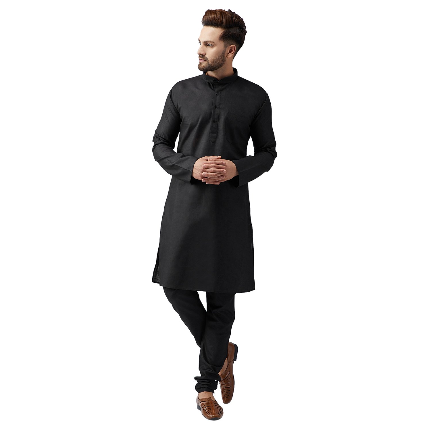 Sojanya (Since 1958), Slate Grey and Black Silk Blend Kurta Pyjama & Nehru ...