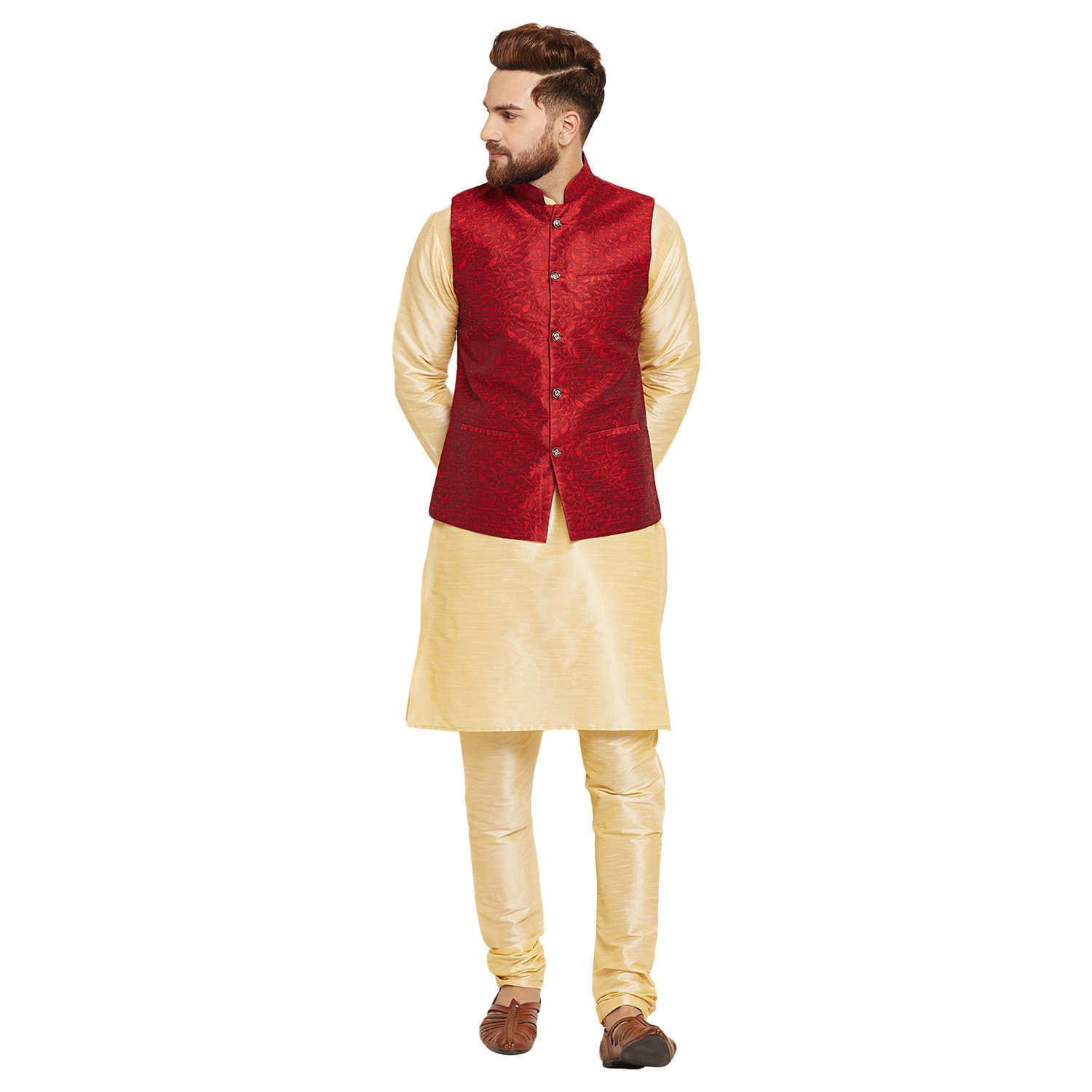 Sojanya (Since 1958), Men's Gold and Maroon Silk Blend Kurta Pyjama & Nehru...