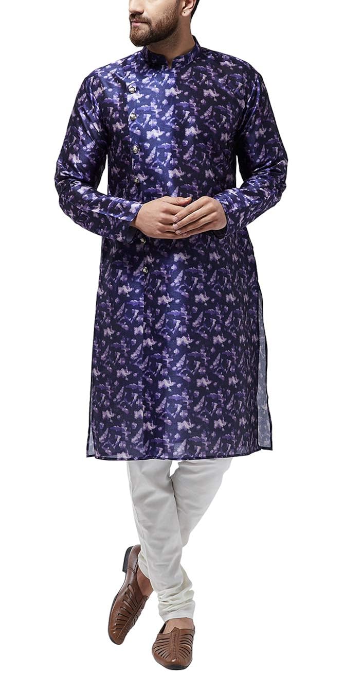 Sojanya Men's Cotton Linen Kurta Pyjamas Set (Sjr-Print-004-40_Multicolor_L...